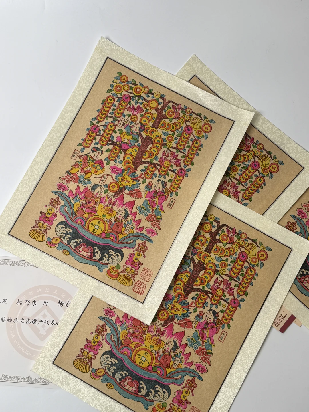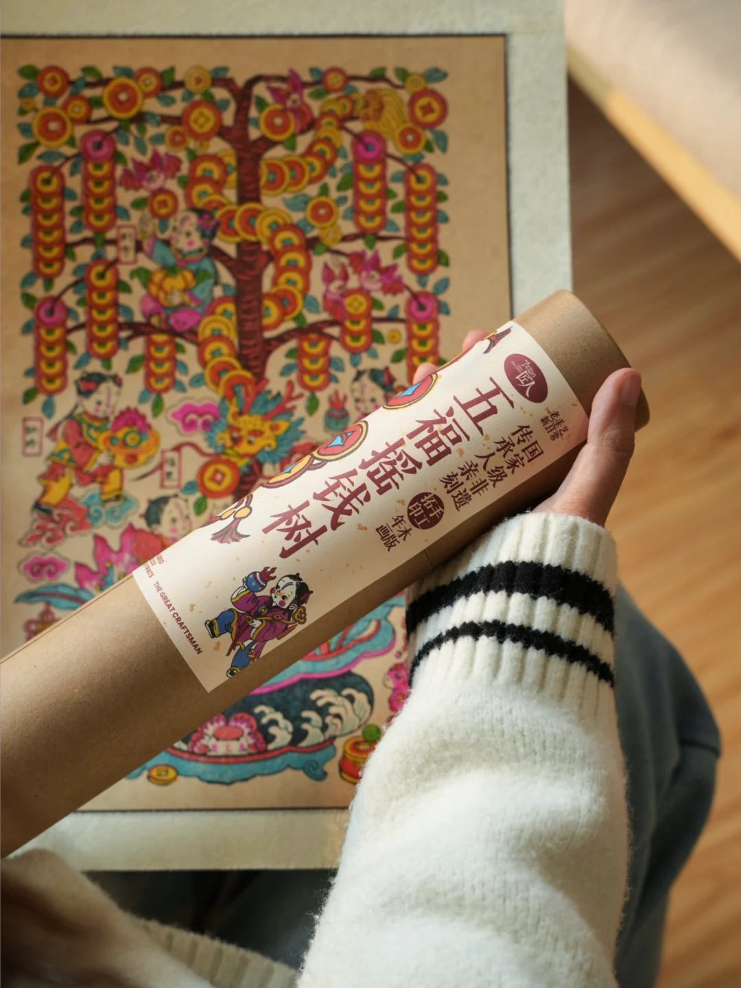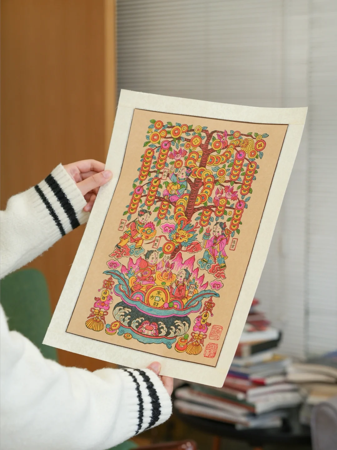 从预告开始大家就催了半个月 现在马年年画来了!! 每一张都是手工印制 光画面我们就改了不下数版 希望在2026能给你们带来好运🍀 我们命名为「五福摇钱树」 相比于去年的年画 画面更加饱满治愈 童子形象更加可爱 元素上添加了小粉马 更加契合马年~ 材质依旧选用棱纸装裱 不易破损 30*40的内芯也方便大家去装框 外包装我们也做了图案的重新设计 收到便能看到铜钱、招财童子 打开包装就是开启好运~