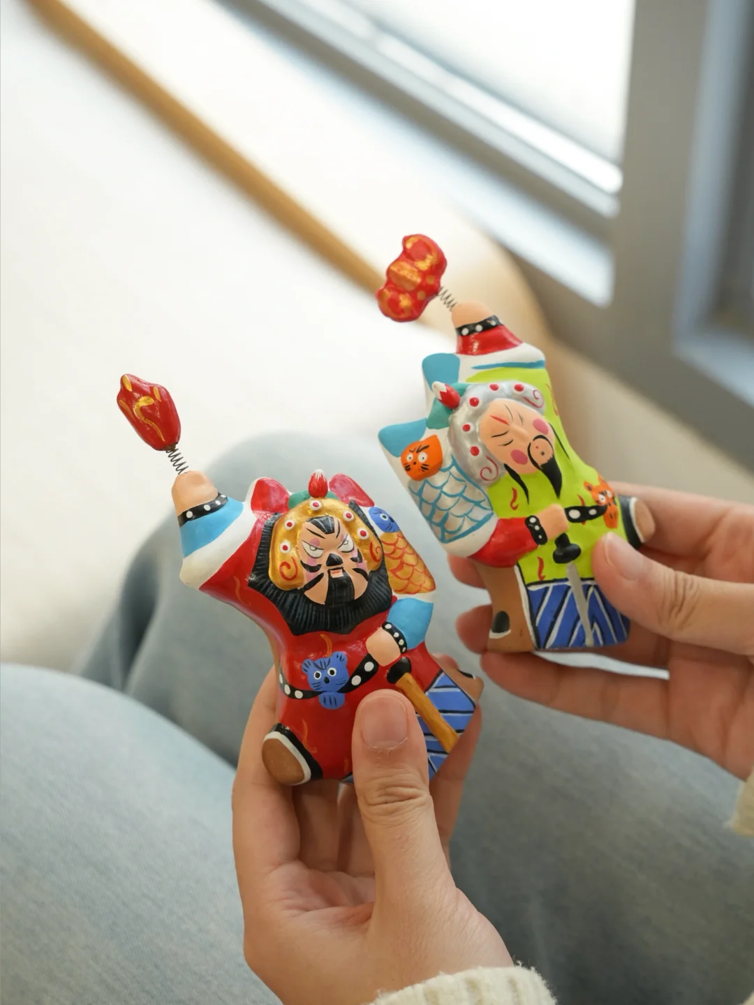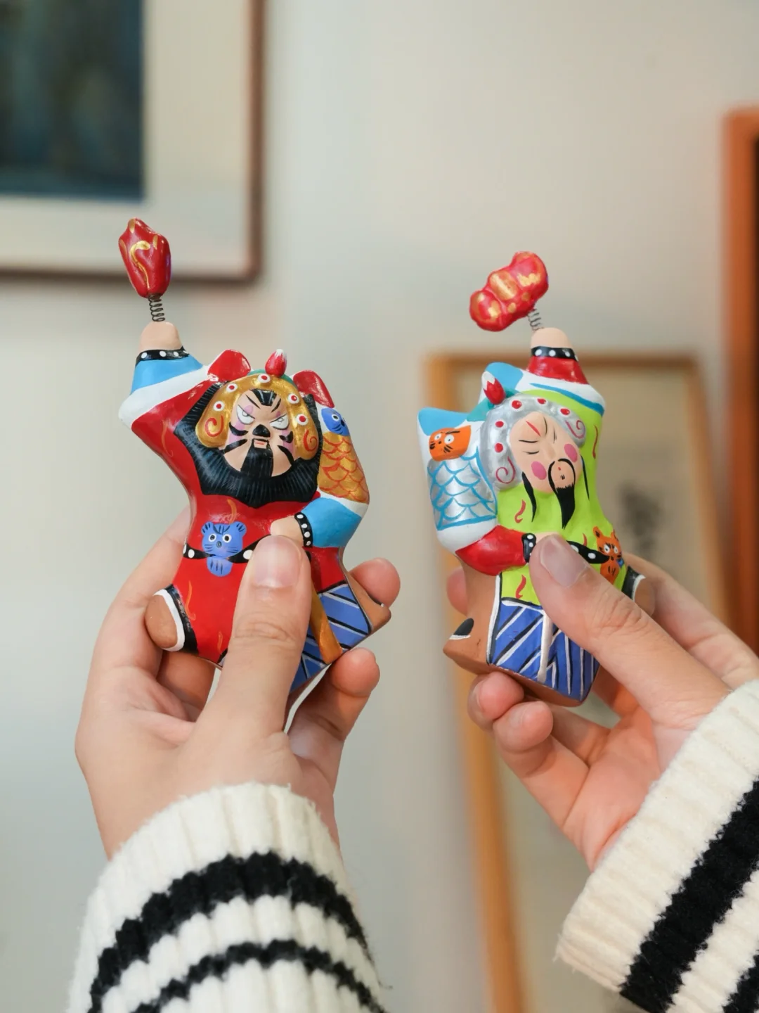 是谁拥有了可可爱爱的门神 民间经典的秦琼敬德 保家平安、挡祟迎祥 手艺人手工捏制而成 不得不说太有想象力啦~ 歪头歪脑的两位门神 少了严肃多了童趣 更适合日常生活里 但依旧可以守护平安