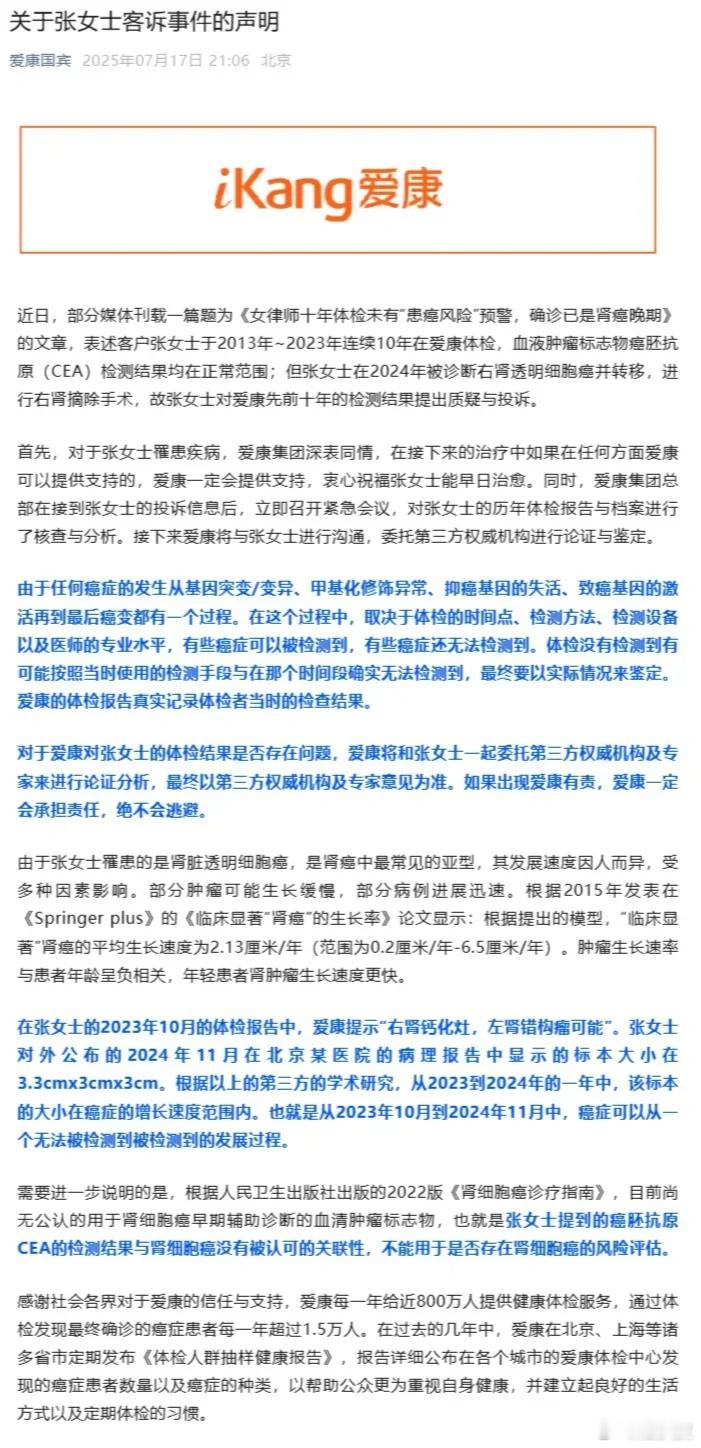 女子体检10年没查出癌症最新进展 就是说体检报告没问题,只是体检检查项目缺项?