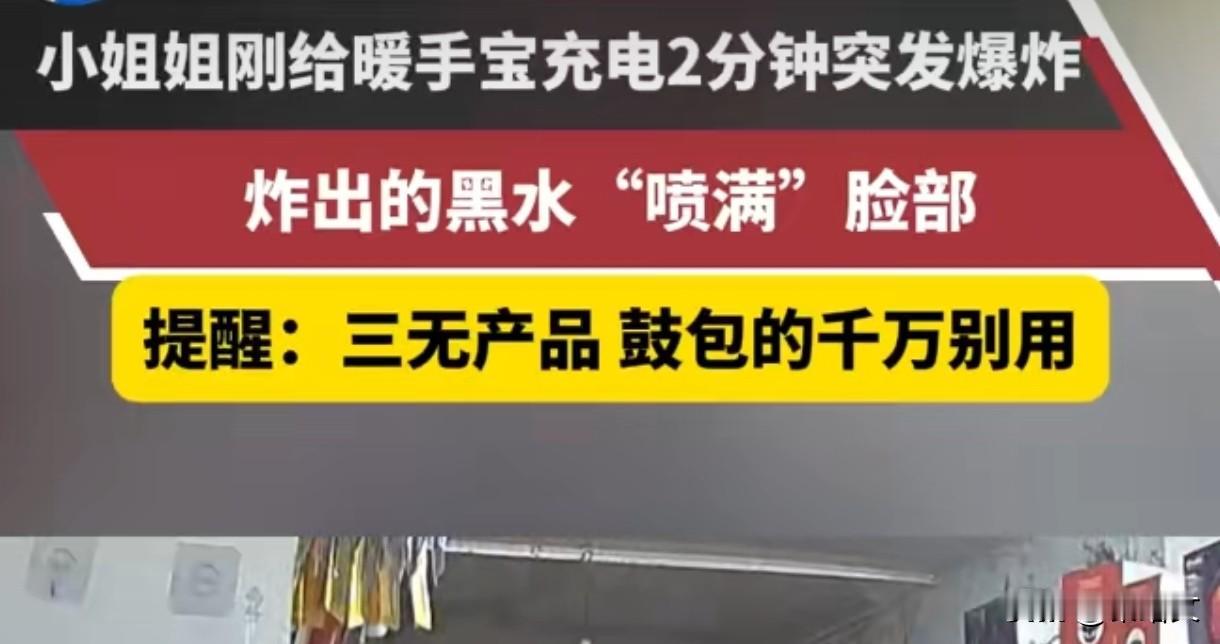 暖手宝充电2分钟炸出黑水!这东西再冷也别乱用 近日河南李女士家出了件后怕的事,一个搁了好久没用的暖手宝,刚充了两三分钟电,突然“嘭”的一声炸了,溅得满屋子都是黑水。 当时李女士和母亲都在旁边,爆炸声直接把老人耳朵震得嗡嗡响,半天缓不过神,她自己也吓得心脏砰砰跳,半天没回过神来。 这暖手宝看着没啥毛病,就是放的时间久了没咋用,谁能想到一充电就出这么大的事儿,差一点就溅到身上烫伤人了。 事后李女士赶紧提醒大家,那些没产品标识、没安全保障的电暖设备,再便宜也别买,用着就是个定时炸弹。 尤其是出现鼓包、漏液、电源线开裂的暖手宝,哪怕看着还能用,也得赶紧扔,千万别抱着侥幸心理继续充电。 很多人冬天图方便,喜欢买廉价的三无暖手宝,觉得凑合用一个冬天就行,殊不知危险就藏在这些不起眼的细节里。 正规暖手宝都有过热保护装置,充电到一定温度就会自动断电,而三无产品根本没这功能,温度过高就容易爆炸。 不光是暖手宝,像电热毯、热水袋这些贴身的取暖神器,都得认准3C认证,别买来路不明的杂牌货。 冬季是取暖设备事故高发期,每年都有不少人因为贪便宜买劣质产品,被烫伤甚至引发更严重的意外。 小小的暖手宝,关乎的是一家人的安全,别让图省事的侥幸心理,酿成无法挽回的后果,真的不值当。 取暖的前提是安全,别让一时的温暖,变成一辈子的遗憾。