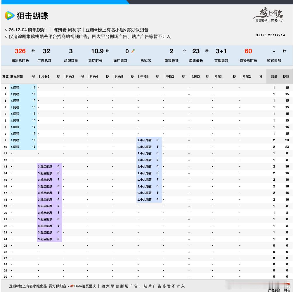 陈妍希、周柯宇狙击蝴蝶腾讯热度破27000招商单集一广挺了几天了,总时长326
