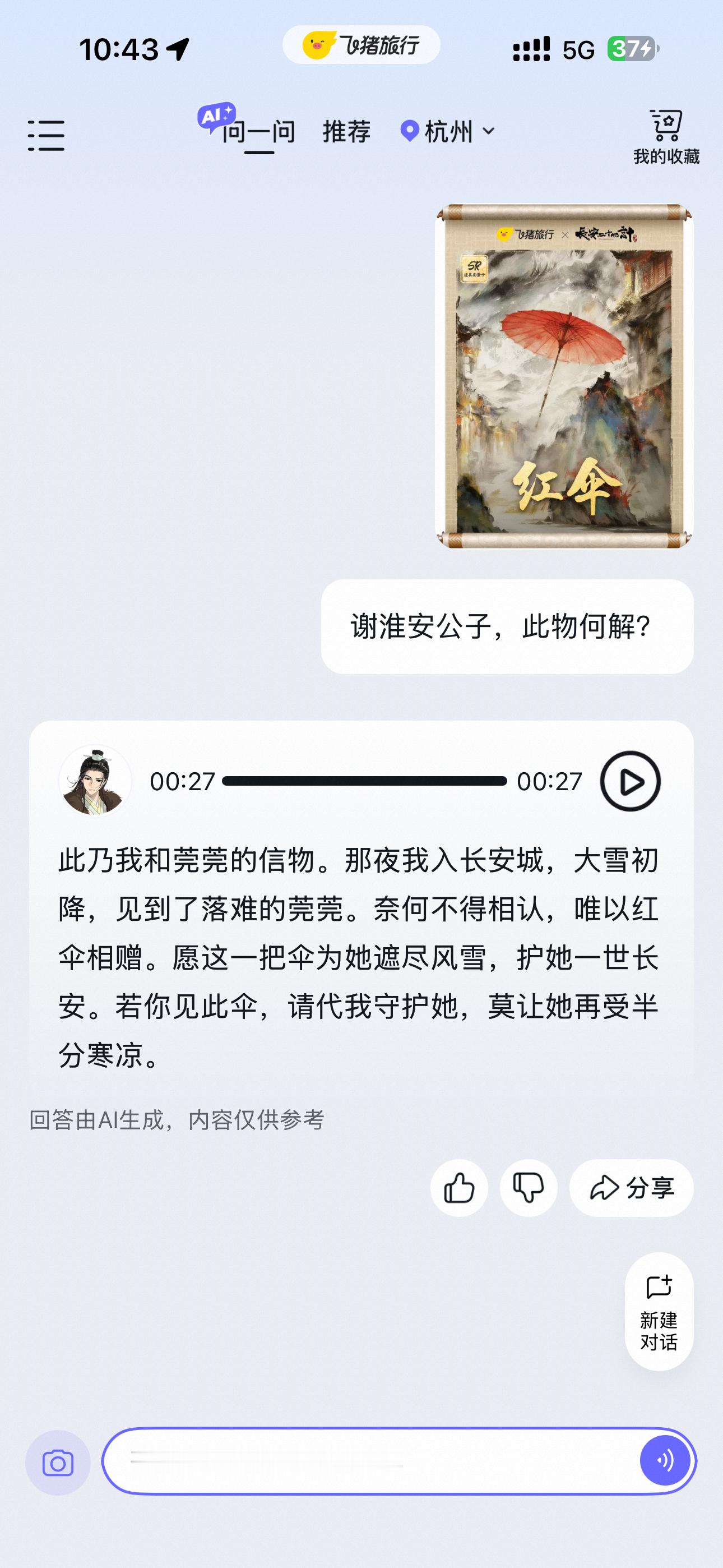 追剧时就觉得那把红伞、那块玉佩不简单,果然藏着大玄机!飞猪的「道具彩蛋卡」直接揭晓答案,上传就能听谢淮安慢条斯理拆解小物件里的妙用,那种恍然大悟的爽感谁懂啊!追剧的快乐,一半在剧情,一半在挖这些细节彩蛋~