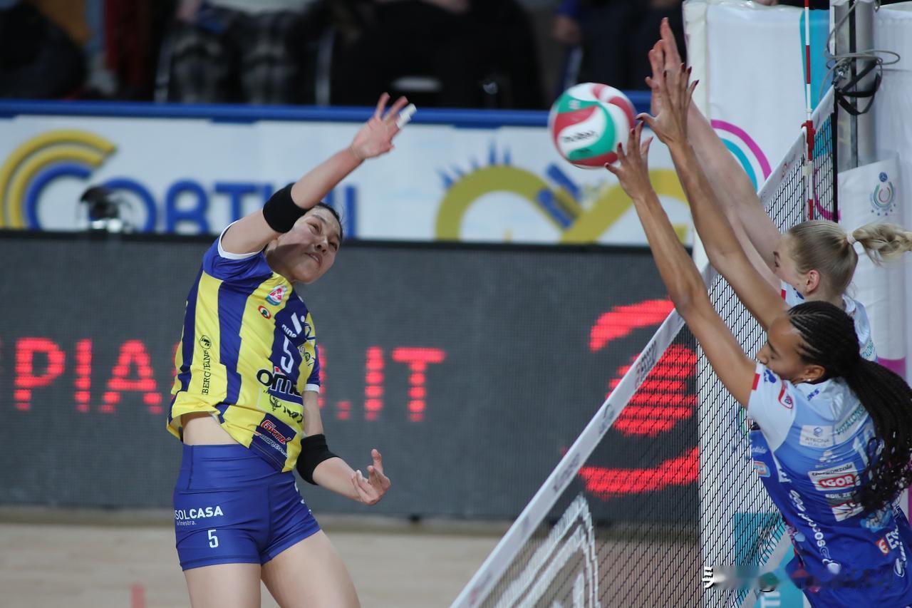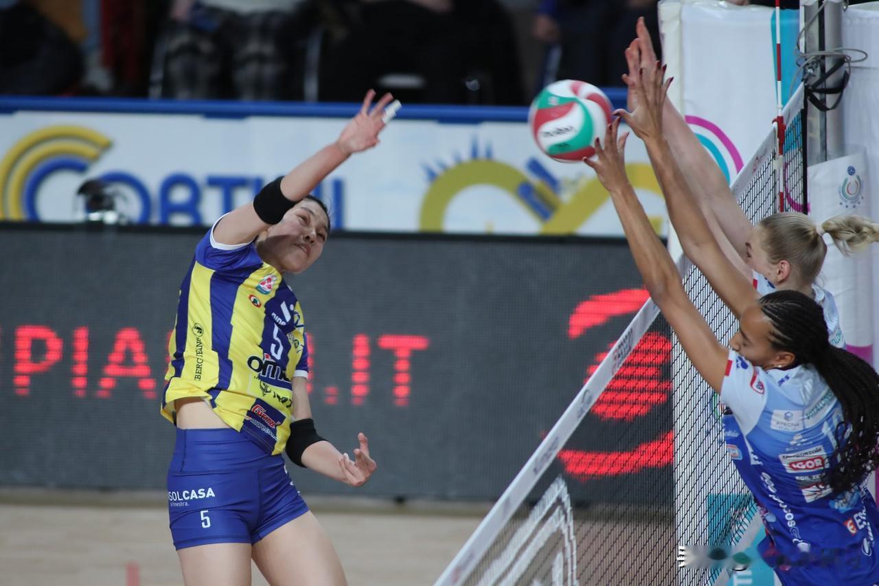 意大利 A1 联赛官网狂赞庄宇珊:表现果断稳健,在场上的存在感也传递出自信和稳定的状态 ... 庄宇珊 21 分,碾压日本主攻石川真佑,成为球队进攻核心:圣乔瓦尼 1:3 不敌不敌意甲豪门诺瓦拉 保级形势依然严峻 意大利 A1 联赛官网:圣乔瓦尼在诺瓦拉展现了顽强拼搏的精神:精彩表现 诺瓦拉之行以失利告终,但圣乔瓦尼带回的绝非消极信号。面对联赛劲旅之一,贝拉诺教练的球员们无所畏惧地踏上球场,展现出极高的竞技强度、严密的组织性和顽强拼搏的精神。 比赛伊始,圣乔瓦尼队便展现出良好的状态:她们积极进攻、稳扎稳打、组织进攻,始终紧咬比分。首局比赛双方你来我往,比分交替上升,圣乔瓦尼凭借清晰的思路和坚定的意志最终赢得了当之无愧的胜利。这局胜利有力地证明了球队的训练方法和每周训练的成效。 随着比赛的进行,诺瓦拉逐渐加快节奏,并充分发挥了她们的经验优势。在关键时刻,诺瓦拉的真正领袖接应托洛克发挥了关键作用。力量、稳定性以及在处理重球时的沉着冷静:她的表现对比赛产生了决定性的影响,在最微妙的时刻打破了双方的平衡。 但圣乔瓦尼并没有放弃,她继续寻找自己的节奏,拼抢每一个球,展现出稳定的发挥和顽强的斗志,这尤其要归功于庄宇珊的出色发挥。这位新晋中国主攻表现果断稳健(拿下 21 分),她在场上的存在感也传递出自信和稳定的状态。 比赛结果虽然未能完全体现圣乔瓦尼的实力,但她的表现却远不止于此。从第一局的精彩发挥到个人接发球,更不用说永不放弃的精神,圣乔瓦尼已经拥有了未来发展的坚实基础。