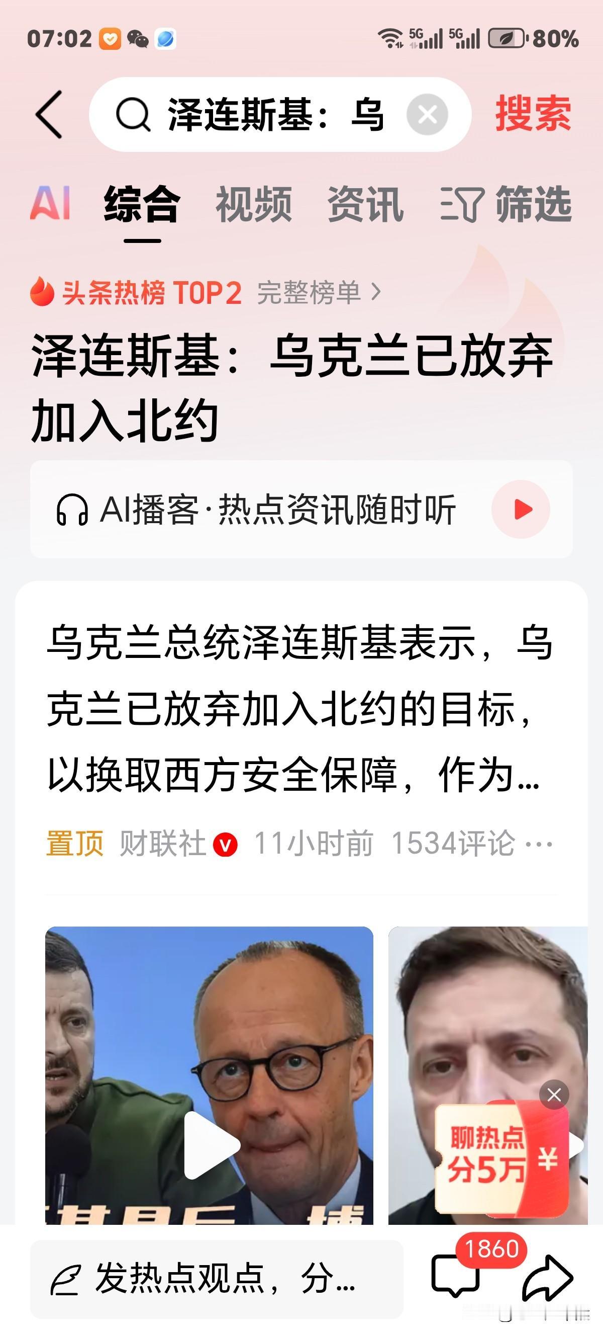 演员和商人是精英集聚领域!只是老特非浓缩。乌克兰放弃加入北约,出自浓缩版泽连斯基口中,应给予点赞。因乌克兰人民既将迎来和平,同时也展现了小泽睿智灵活执政理念,到一定时候可以不按剧本行事!当然临场发挥出资方要默许方可。 有人说,乌克兰不加入北约,那不白挨3年多揍吗?实则不然,不加入北约乌克兰会获得西方保护,结果和大嫂是女性一码事。 这时又有人问?早知如此何必当初?乌早这么说,那俄乌冲突不会发生呀!几十万乌士兵阵亡不没意义了吗?答案依旧是否定的,乌克兰虽然死了不少人,丢了不少领土,但乌克兰能换来西方国家全力保护,这样泽连斯基足以告慰牺牲的乌战士在天之灵!也可向编剧,导演,出资方交上个圆满剧终。 总之泽连斯基此次表态,放弃加入北约,不论怎样讲都是个好消息,肯定是向和平迈出一大步。若能感动普京在停战协议上签字,那笔者建议可以给泽连斯基颁发和平奖!