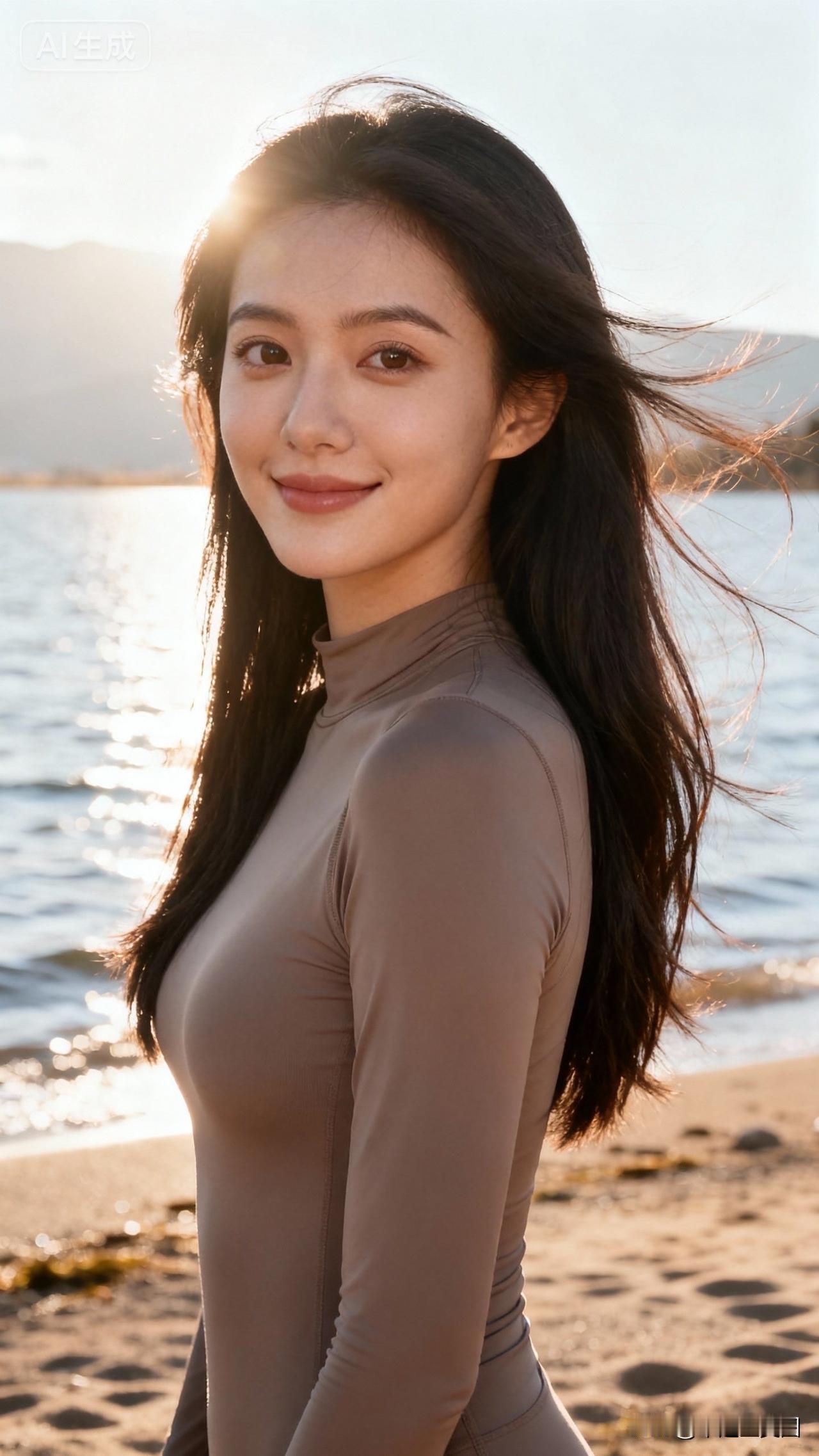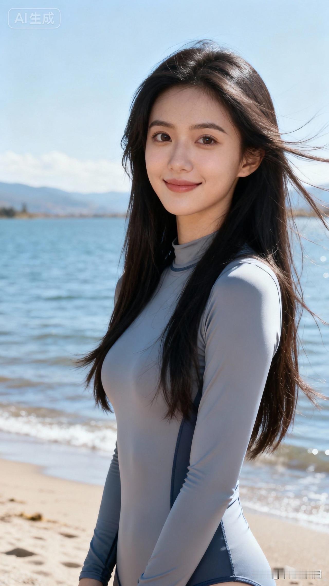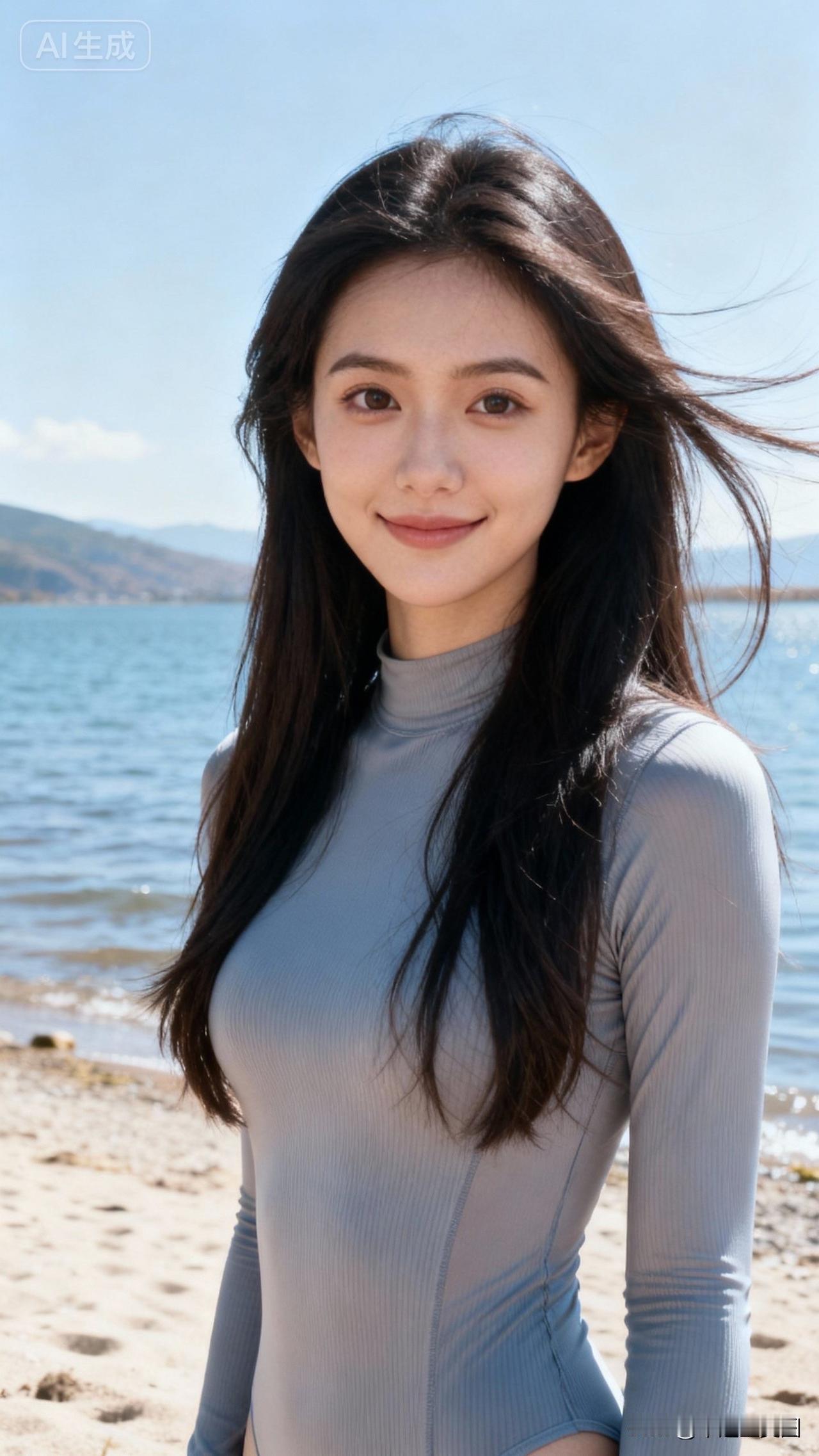 优雅的海边白裙少女,清新自然,宛如画中仙子。