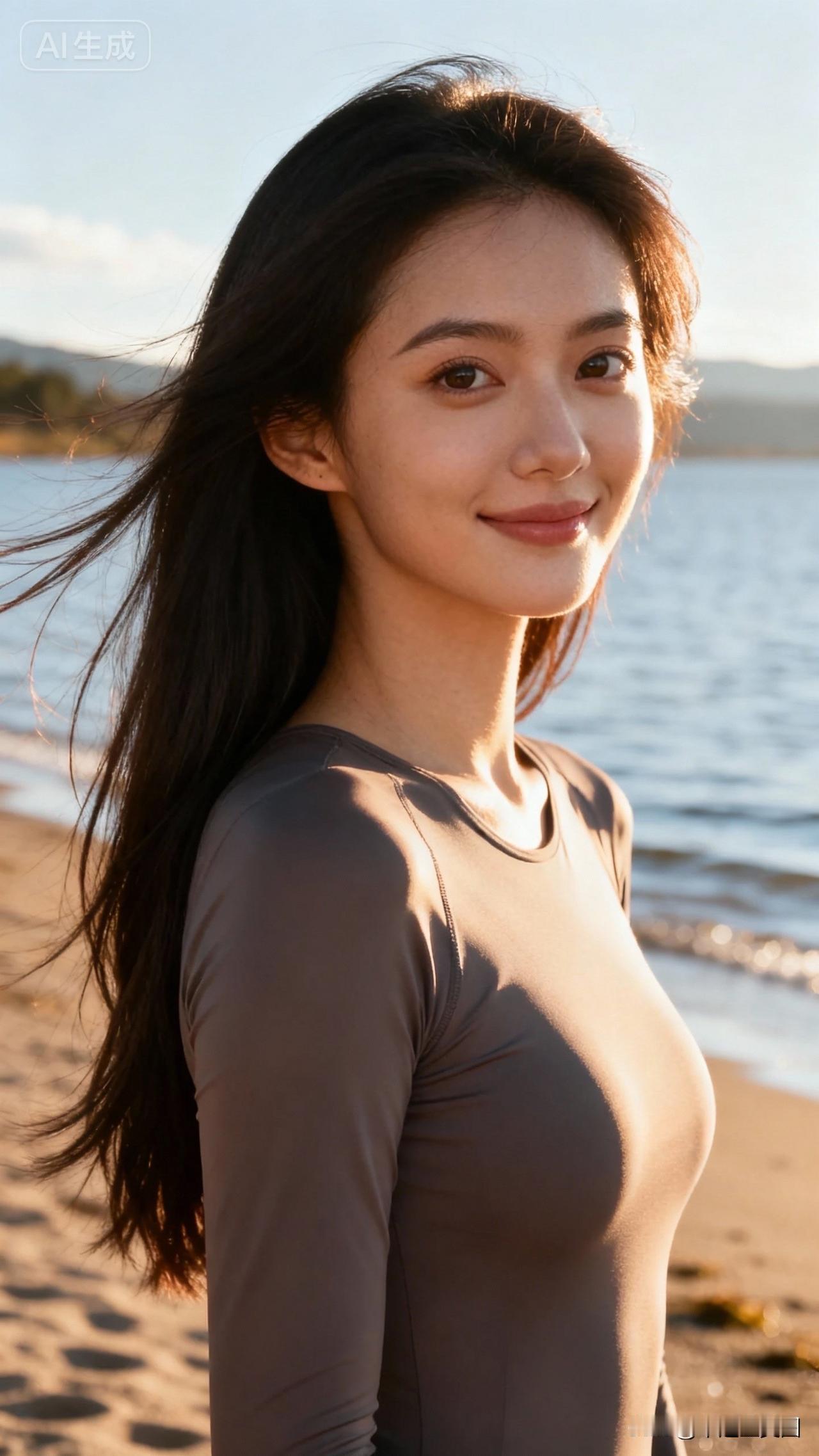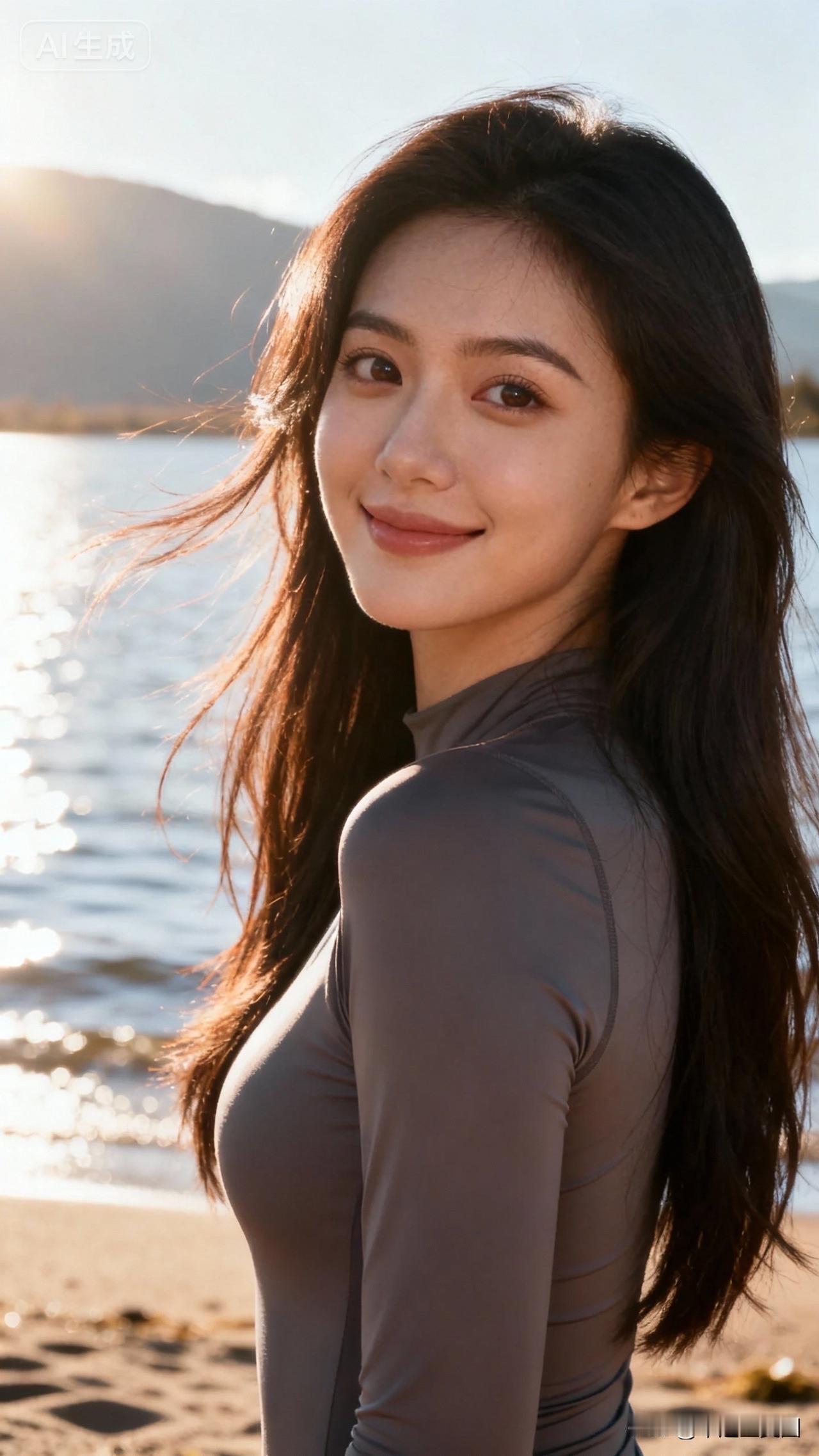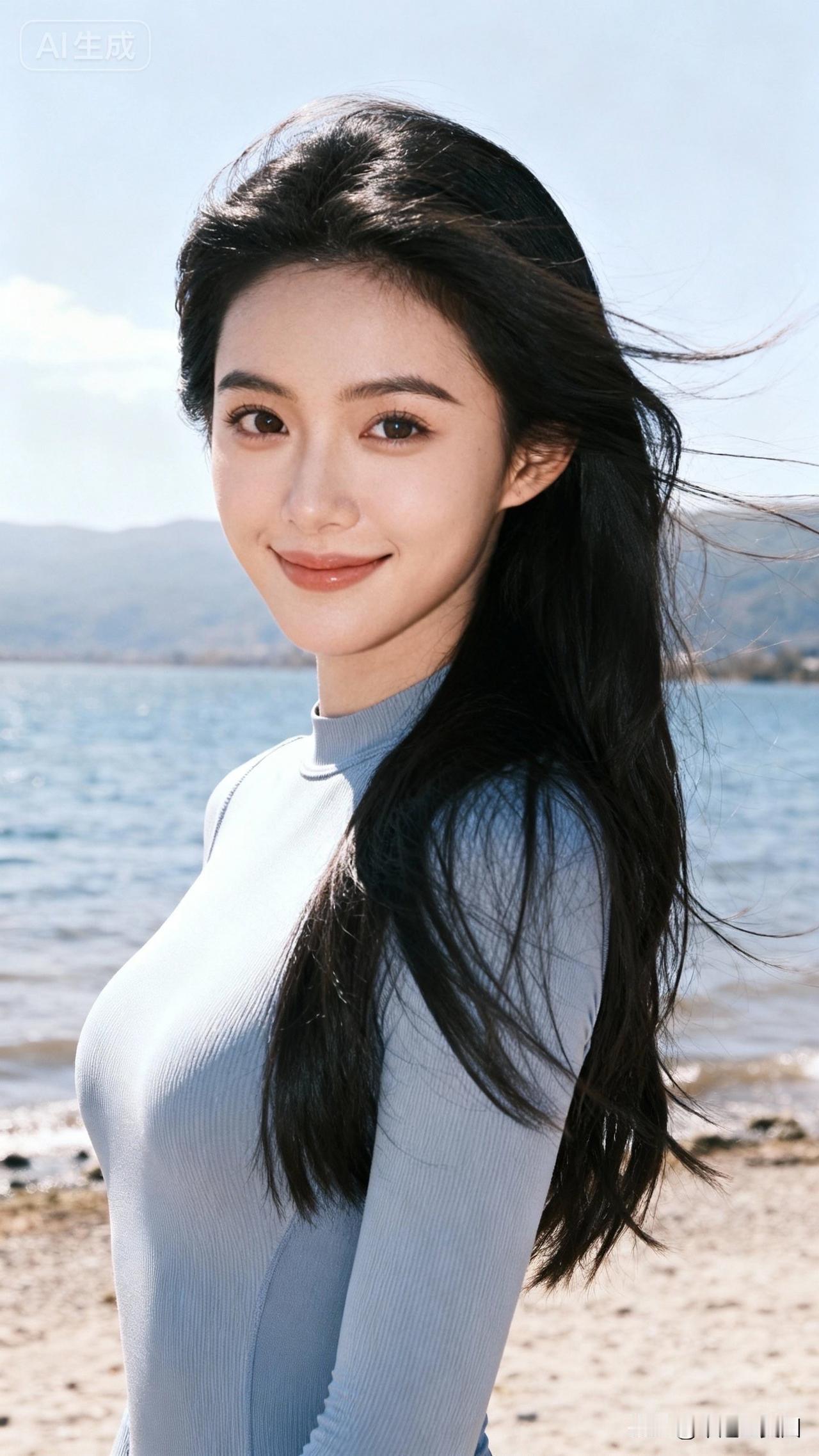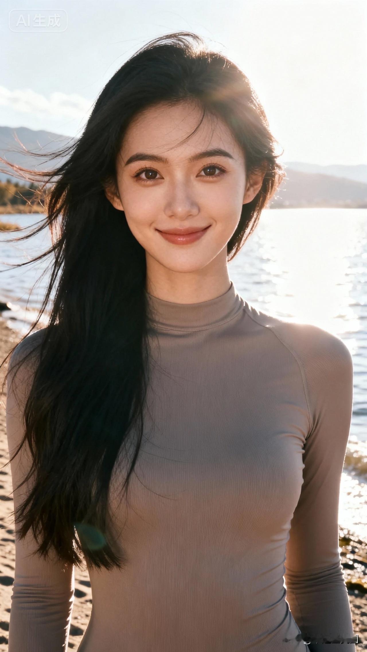 优雅的海边白裙少女,清新自然,宛如画中仙子。