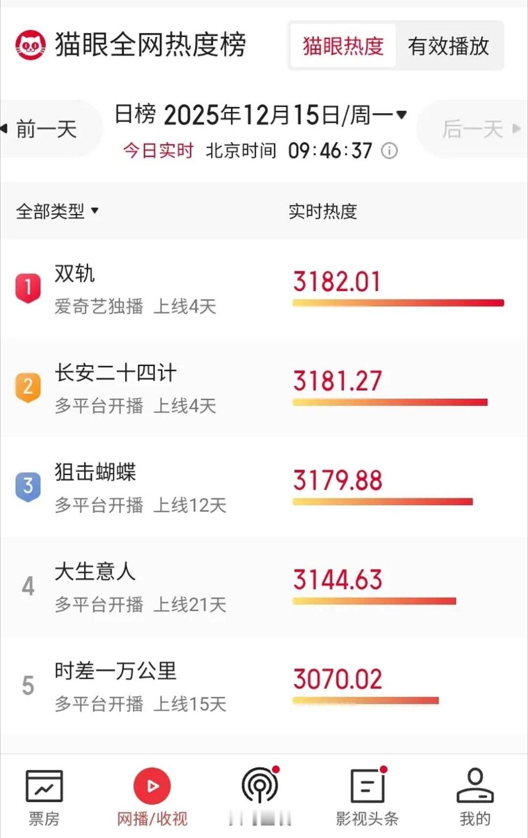 双轨热度不是挺好的嘛?开播两天猫眼热度都是第一