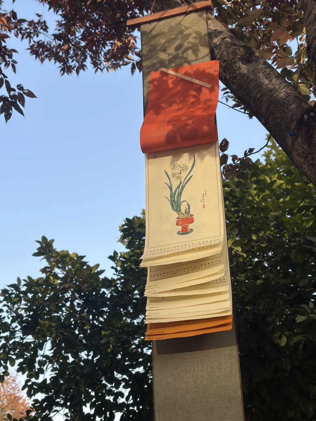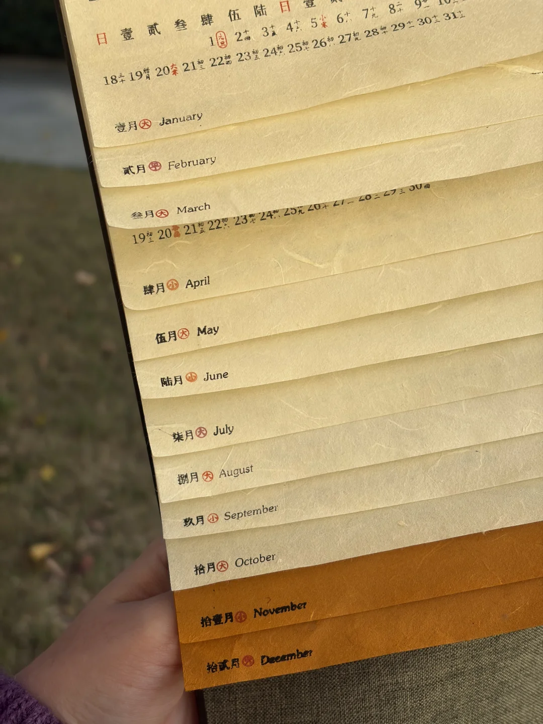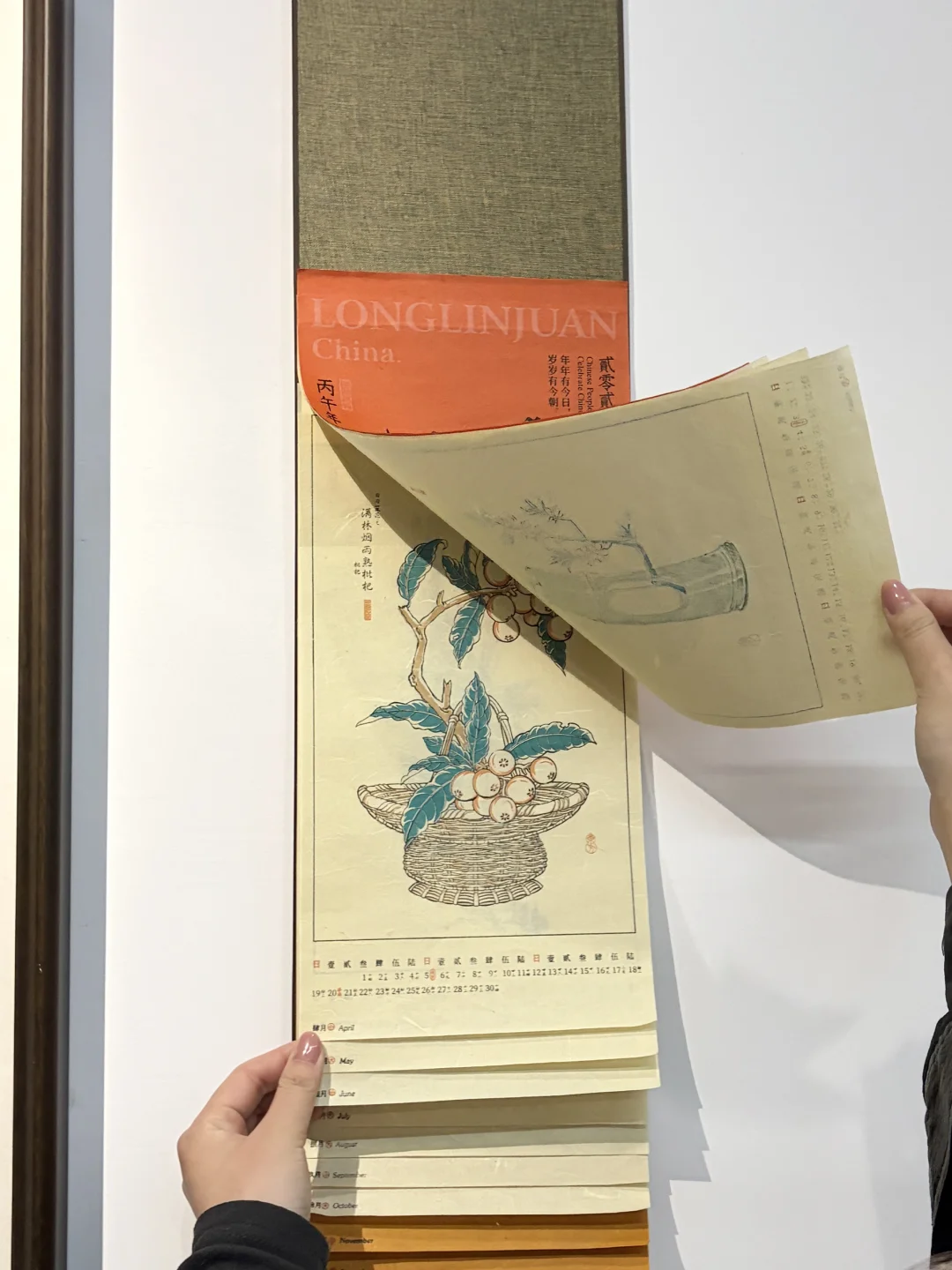 手工造特种纸、套色拓印、书法题字 每一个在研发时 都需要花费时间与精力的工艺 机器无法代替的质感!! 2026马年不选它 你就真的错过天花板挂历了! 实物美到哭😭 装帧工艺融入了传统龙鳞装 在作为装饰时就已足够好看 每个月份按顺序排下 也可以标记自己重要的一月 每月的封面采用十二花令图 过完一月可以撕掉也能留下做壁画 每一月拥有独特质感 配有磁吸夹很方便 可重复利用的桐木外盒 赠人有心意 送自己也恰到好处~