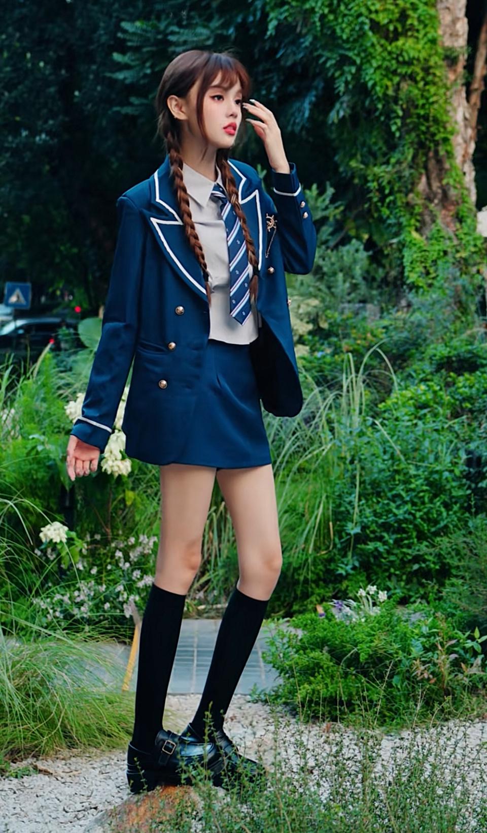 1. 藏青西装撞上森系绿意,是属于少女的学院风浪漫呀~ 2. 把英伦学院风穿在身上,在绿植巷弄里邂逅一场青春序曲 3. 双麻花辫配藏蓝制服,森系背景里的学院少女,氛围感拉满✨