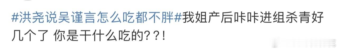 洪尧说吴谨言怎么吃都不胖粉丝怎么说话这么难听,他两是夫妻,说一句老婆吃不胖都要被