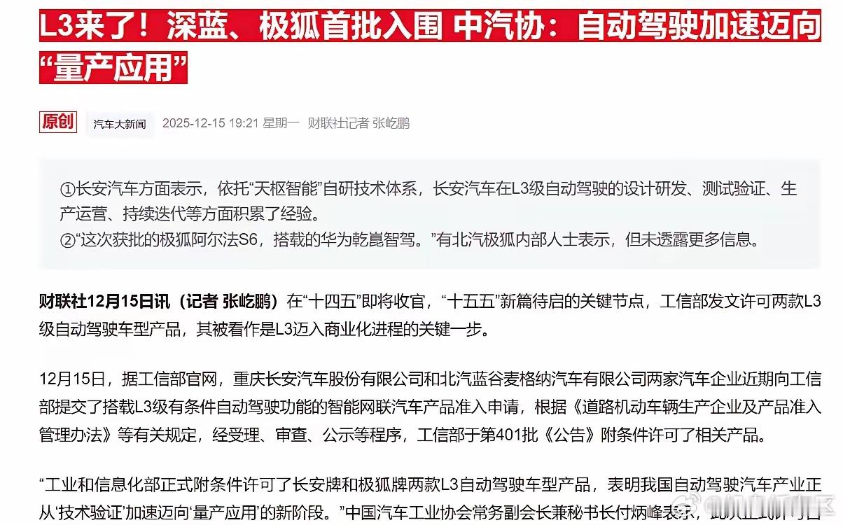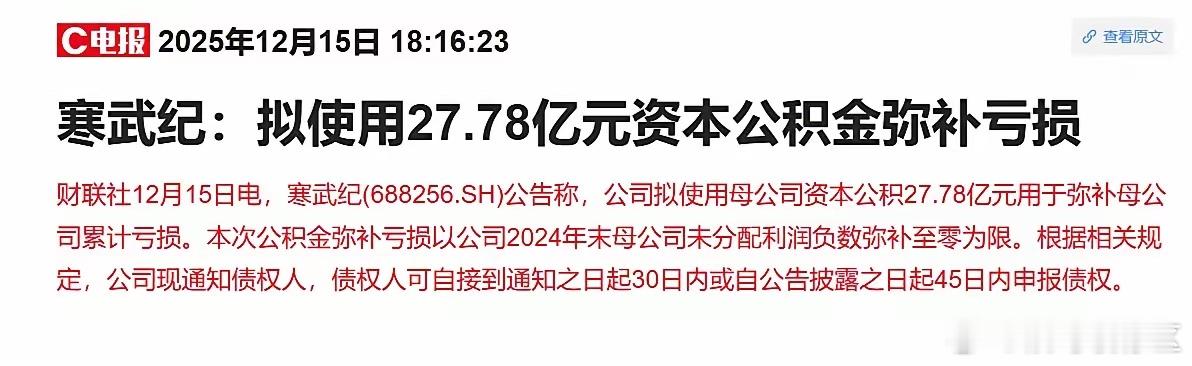 盘后,A股市场四大重磅消息!寒王一则公告引起市场高度热议,该怎么解读?明天的A股重点看什么?一文说明白:1、刚刚,寒王发布公告,使用母公司资本公积27.78亿元用于弥补母公司累计亏损,该怎么解读?很多股民朋友看到这一消息的第一反应就是负面情绪,有说是违法行为的,也有说是拿募集的钱弥补亏损的,也有说经营不好亏损的等等;因为很多人上周末刚看好摩尔拿闲置募集资金75亿去现金管理的消息,今天又看到寒王的公告,所以内心不能接受。其实,大家需要冷静的看待,因为这个和摩尔完全不是一回事,也没有很多人想象的那样。上市公司拿资本公积金弥补亏损这是2024年7月份新出台的公司法中允许的行为,也就是说是合法合规的,需要经过股东大会决议;这算不上是利空消息,算是一个积极的消息,因为这相当于是优化财务报表的一种行为,公司今年前三季度实际上已经是有盈利的,现在用资本公积金弥补2024年亏损,也是为了后续可以分红,送股等回报投资者的操作扫清障碍;因为未分配利润为负数的时候,一般是不能正常分红的,这样大家就应该可以理解为啥要弥补2024年亏损了。总的来说,大家可以理解为这是优化财务资产负债表的一种方式,优化过后就是累计亏损变成了未分配利润为0,后续分红和回报投资者就是正常了,严格来讲是偏利好的消息。关于财务方面的内容,我觉得大家有时候也可以去补补课,不一定非得被带节奏。2、沐曦股份将于12月17日科创板上市,这个消息怎么看?12月5日摩尔上市,上市之后股价一度涨到900以上,上市之前公司估值200多亿,上市之后市值翻20多倍,这只需要一年的时间;而周三沐曦股份也要上市了,会重演奇迹吗?对于中签的资金来讲,参考摩尔上市,会享受到估值溢价的,但是不一定会重演摩尔的大涨;公司也提示了在新股上市初期切忌盲目跟风“炒新”,应当审慎决策、理性投资,另外上周五刚刚经历了摩尔把募集闲置资金进行现金管理的消息,市场还存在一定的负面情绪,可能跟风炒作不会太疯狂;总的来说,上市之后估值大幅提升是确定性的,但是炒作可能不会太过于疯狂,对于没有中签想要后面跟风炒新的资金来讲,确实需要保持理性。3、磷酸铁锂行业迎来利好消息,有头部行业提前锁单扩产,行业集体提价潮开始;磷酸铁锂正极材料厂商集体提价,新能源产业链反内卷终于有了效果,反内卷作为经济工作会议中的重要方向之一,现在也是看到了效果;这对于新能源产业链来讲算是利好消息了,锂矿,光伏,风电,储能等上中下游整个新能源产业链,只要有一环出现提价,那么环环相扣都会有提价的预期,而提价就是对产业股价最有利的刺激;反内卷虽然有提前炒作的预期,也都涨了一些幅度,但回落下来还有机会,因为从业绩的角度来讲,提价预期下,四季度以及明年的业绩可能会有改善的预期;4、今晚,工信部发文许可两款L3级自动驾驶车型产品,其被看作是L3迈入商业化进程的关键一步。L3定义是有条件自动驾驶,L3之前,属于系统辅助人驾驶,驾驶员是全程负责的,但是L3之后,法规明确是“系统和车企”将会承担主要责任的,所以权责上有明确之分;而且也标志着无人驾驶进入新纪元,相关产业链概念是利好,主要是这些方面:一是两款车型分别来自于长安深蓝和北汽极狐;二是对于激光雷达,智能底盘等汽车零部件是利好;三是对于高算力芯片,汽车芯片,高精度地图等也是直接的利好;所以明天无人驾驶概念,汽车核心零部件相关概念股会迎来资金的炒作参与。5、最后,说一下对于明天指数还有方向的看法;大盘指数明天保持窄幅震荡概率较大,3850点是支撑;创业板指数承压,主要是看CPO光模块是否止跌;板块来讲,美股AI科技交易泡沫担忧冲击A股市场科技,短期消费扩内需迎来利好,所以短期消费内需会强于科技;另外,今晚无人驾驶的利好消息,会成为明天市场短线资金炒作的热门题材概念为主;A股市场今天缩量较为明显,也代表短期下跌空间有限,跟风资金越是不敢进场,市场跌幅越有限,一旦跟风资金追涨入场,那么冲高就会有资金兑现;所以,今天跌破1.8万亿之后,若市场再度缩量,反倒也不用恐慌,只是年底行情本身就是煎熬,需要把握时机节奏,控制好仓位才行。点赞加关注,时间会给你最真实的答案