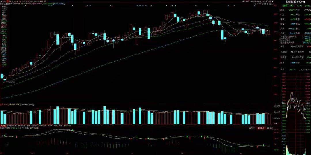 12月16日A股策略:交易数据释放重要信号!主力借调整大幅加仓!林哥专注A股市场每日实战操作,让散户投资不迷路!如果你不是长线投资者,想在A股市场中活下来,那么必须明白:周密的布局计划只能奠定好的开端,严格的操盘纪律才是盈利的核心底气,唯有坚守纪律,方能在震荡市中结出丰硕果实!大势研判周一A股呈现缩量回调态势,成交量较前期萎缩3200亿,回落至1.79万亿,正式退守2万亿关口之下。从技术形态来看,大盘当日冲高回落,盘中高点一度突破5日线,但未能站稳支撑、快速回落,暗藏诱多嫌疑。值得警惕的是,近3个交易日大盘始终未能有效站稳5日线,短期大概率面临5日线压制下的下行压力。若当前点位持续被5日线压制走弱,大盘或将进一步向下偏离60日线,形成短期破位走势,这一点需要大家高度重视!唯有大盘重新站上60日线,才能有效摆脱中期趋势转弱的风险,重启反弹动能。盘面跟踪周一沪深两市个股呈现“跌多涨少”格局,上涨个股2300家,下跌个股2900家,涨跌比差距虽未拉开,但市场赚钱效应偏弱。板块表现上,乳业、零售、白酒等消费类防御性板块逆势走强,结合交易数据拆解,核心是游资主动加仓推动;此外,保险、贵金属板块同步走强,成为盘面少数的避风港。跌幅端来看,泛科技主题集体走弱,AI手机领跌两市,CPO、半导体、AI眼镜、AIPC、SORA概念等热门赛道跌幅居前,资金出逃迹象明显。主线热点方面,周一仅商业航天板块逆势抗跌,其余主线悉数跟随大盘回调,整体市场格局呈现“防御主导、热点涣散”的不健康状态,操作难度进一步提升。消息面跟踪1. 中央经济工作会议定调后,资本市场最新改革动向逐渐清晰。证监会近期召开的党委(扩大)会议上,证监会主席吴清明确了证监会贯彻落实中央经济工作会议精神的具体举措,提出12条重点改革方向,其中多维度增强市场内资稳定性的举措,有望进一步夯实市场底部支撑,提振市场信心。2. 商务部等6部门联合印发《促进服务外包高质量发展行动计划》,明确要充分发挥服务外包在培育外贸新动能、拓宽就业渠道中的核心作用,加快新质生产力培育,助力经济高质量发展,相关细分领域或迎来长期布局机遇。市场资金面周一市场资金呈现“机构与游资严重分歧”的特征:机构端呈现“买盘放量、卖盘萎缩”的态势,加大力度抄底布局;而游资端则是“买盘萎缩、卖盘放量”,从上周五的中幅净流入转为小幅净流出,短期趋于谨慎。板块资金流向上,目前机构与游资尚未形成合力买入的主线热点:分开来看,机构再次大幅加仓商业航天板块,但游资对该板块进行小幅高抛,分歧尤为明显。结合当前资金动向判断,由于机构与游资分歧未缓解,且未出现大规模跨板块调仓动作,周二市场主线热点大概率不会出现明显切换,仍需聚焦低波动防御板块与少数抗跌主线。