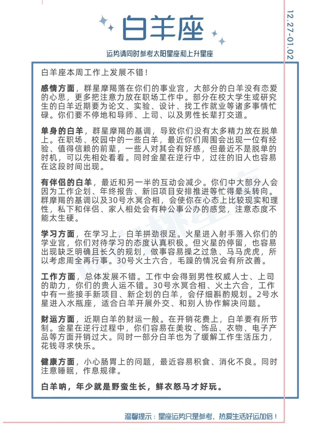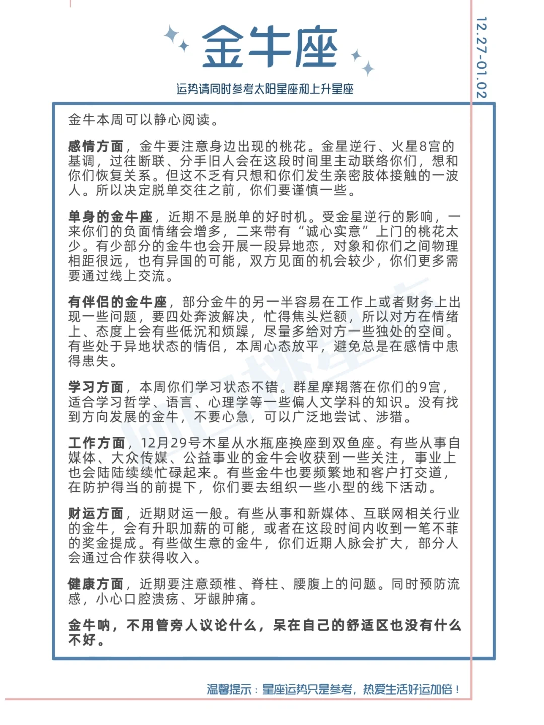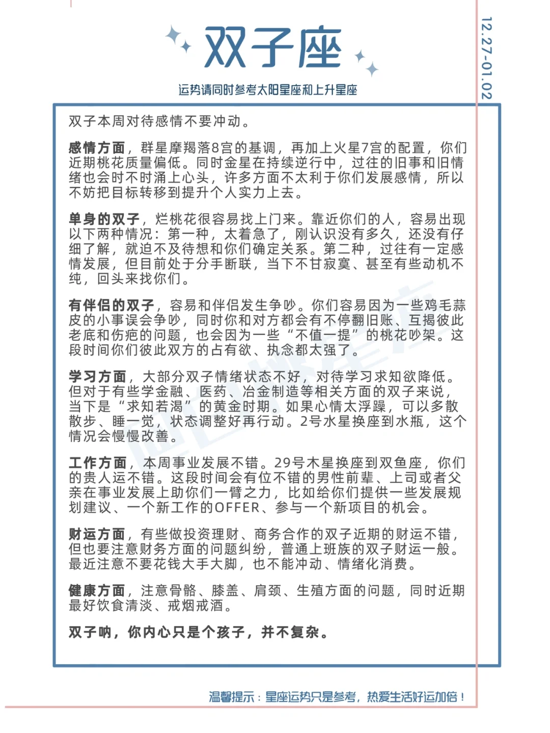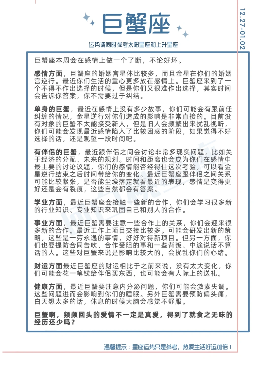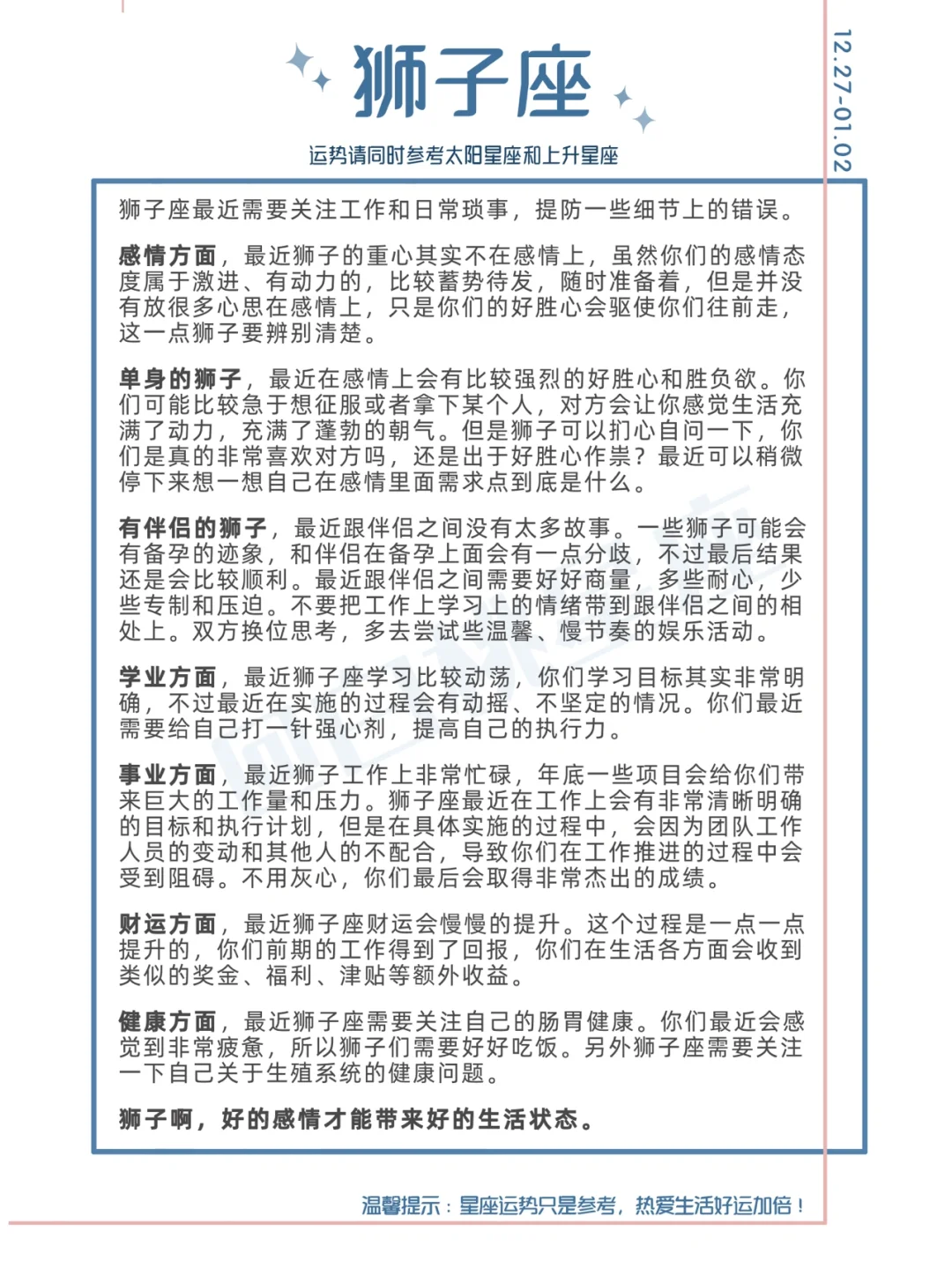 (内心感受参考太阳星座,实际事件参考上升星座) 提前祝大家跨年快乐~~[害羞R][害羞R]