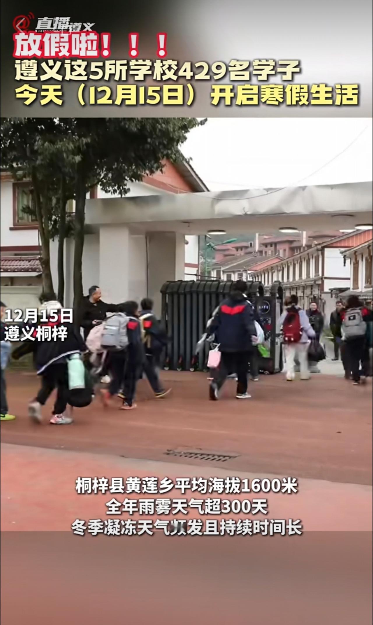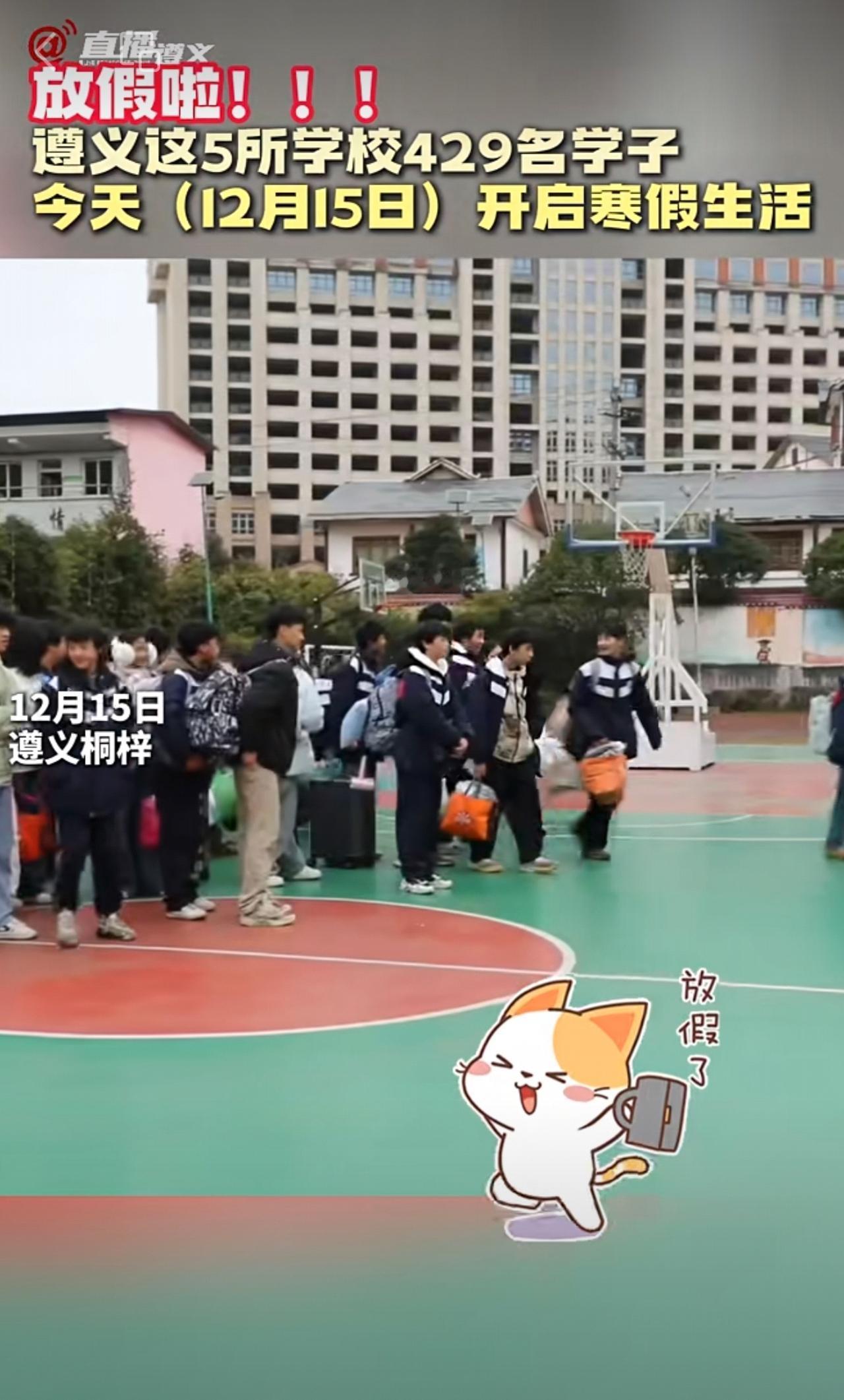 放假啦!!!遵义这5所学校429名学子今天(12月15日)开启寒假生活。放假 寒假 来源:桐梓融媒 陈桂良 万莲莲 编辑:郑英 编审:匡斌 周颖