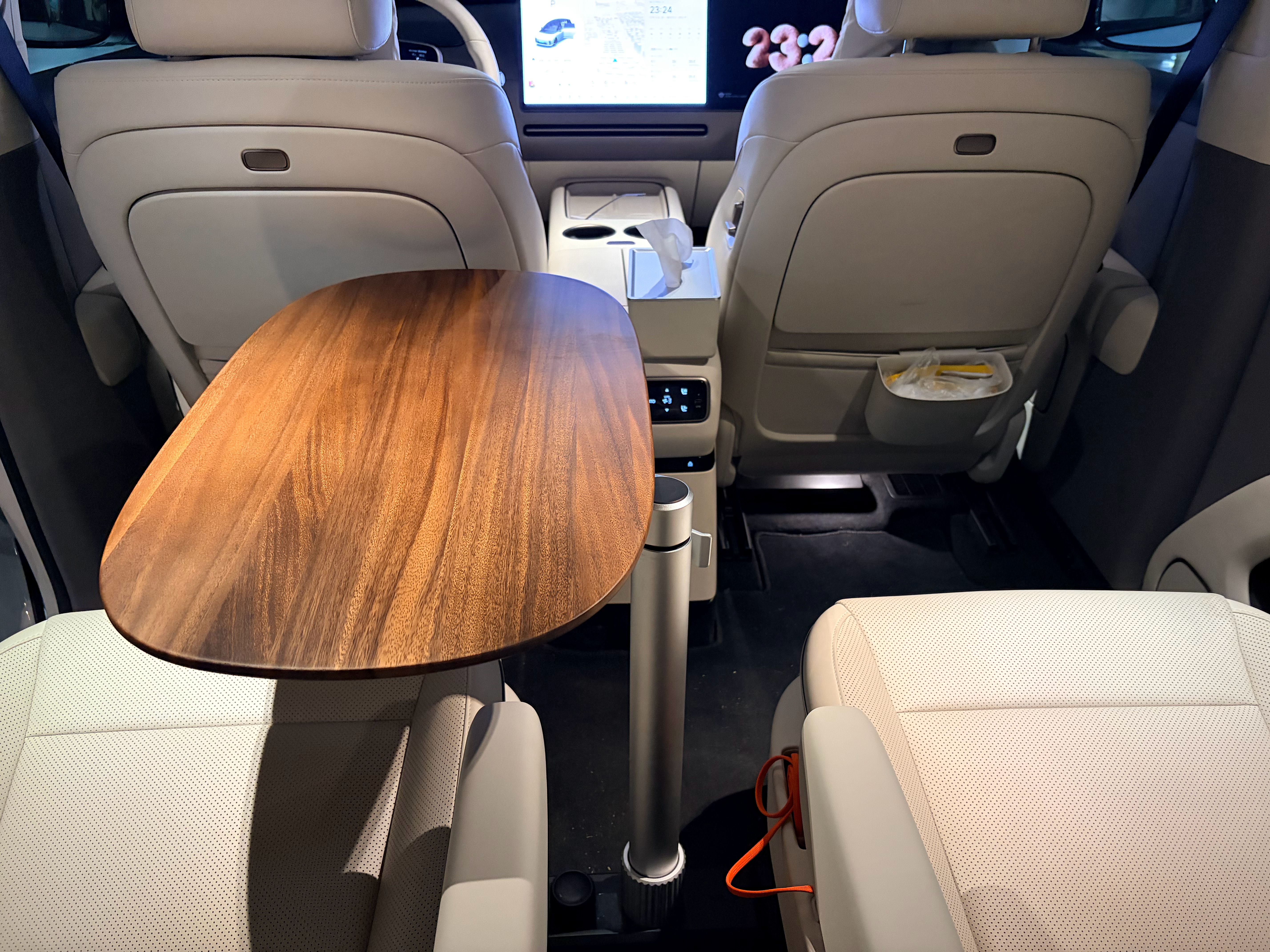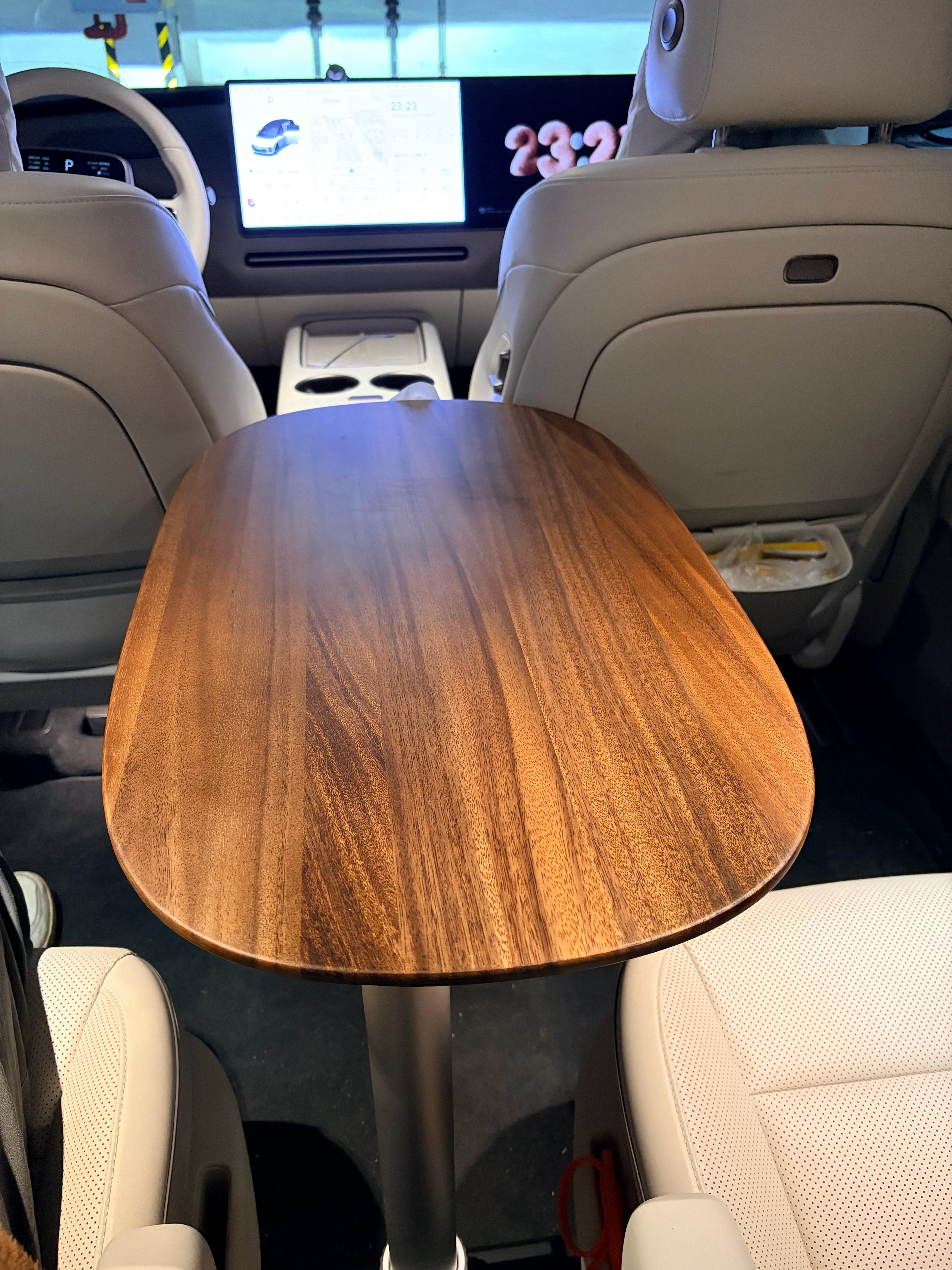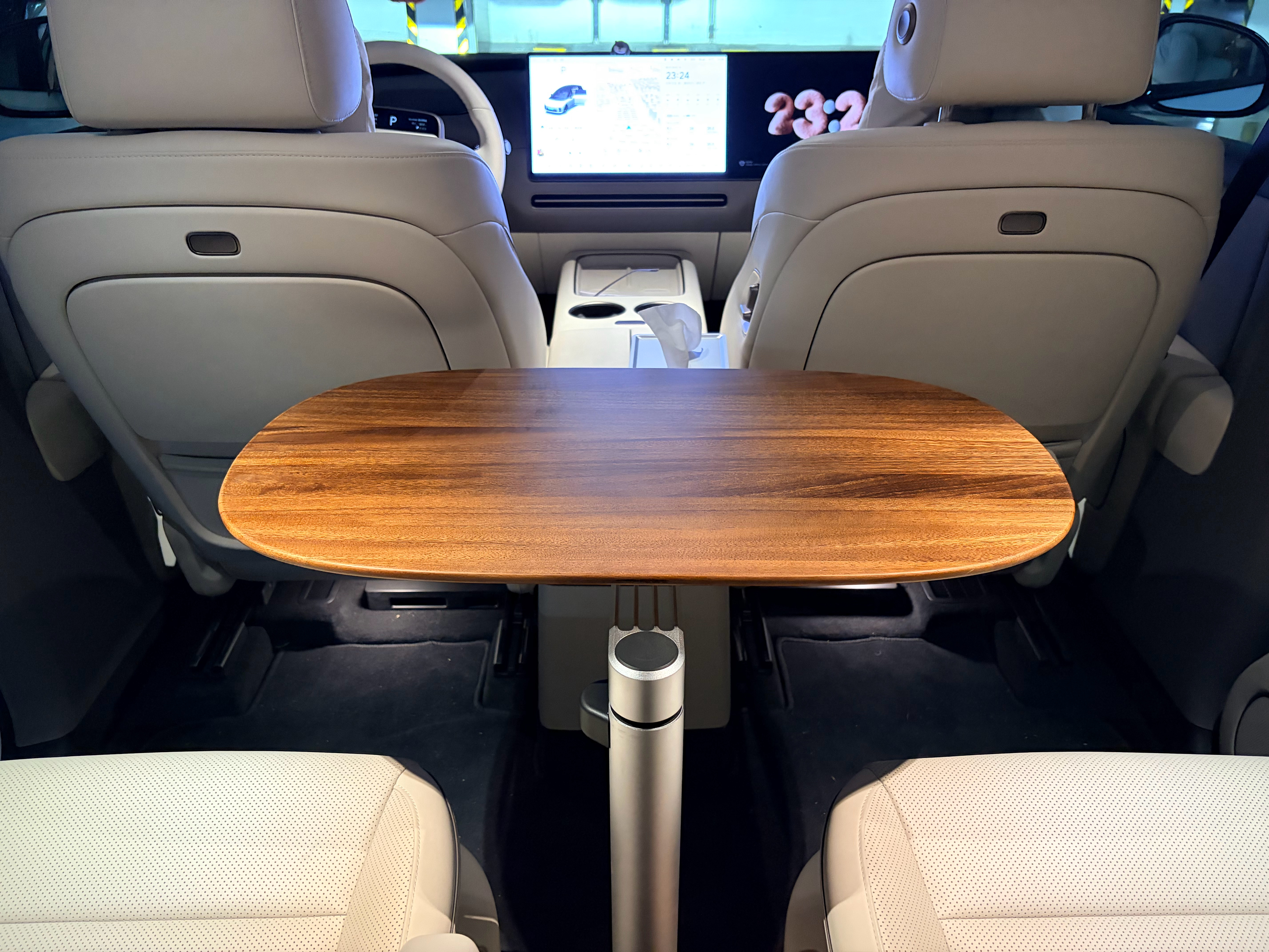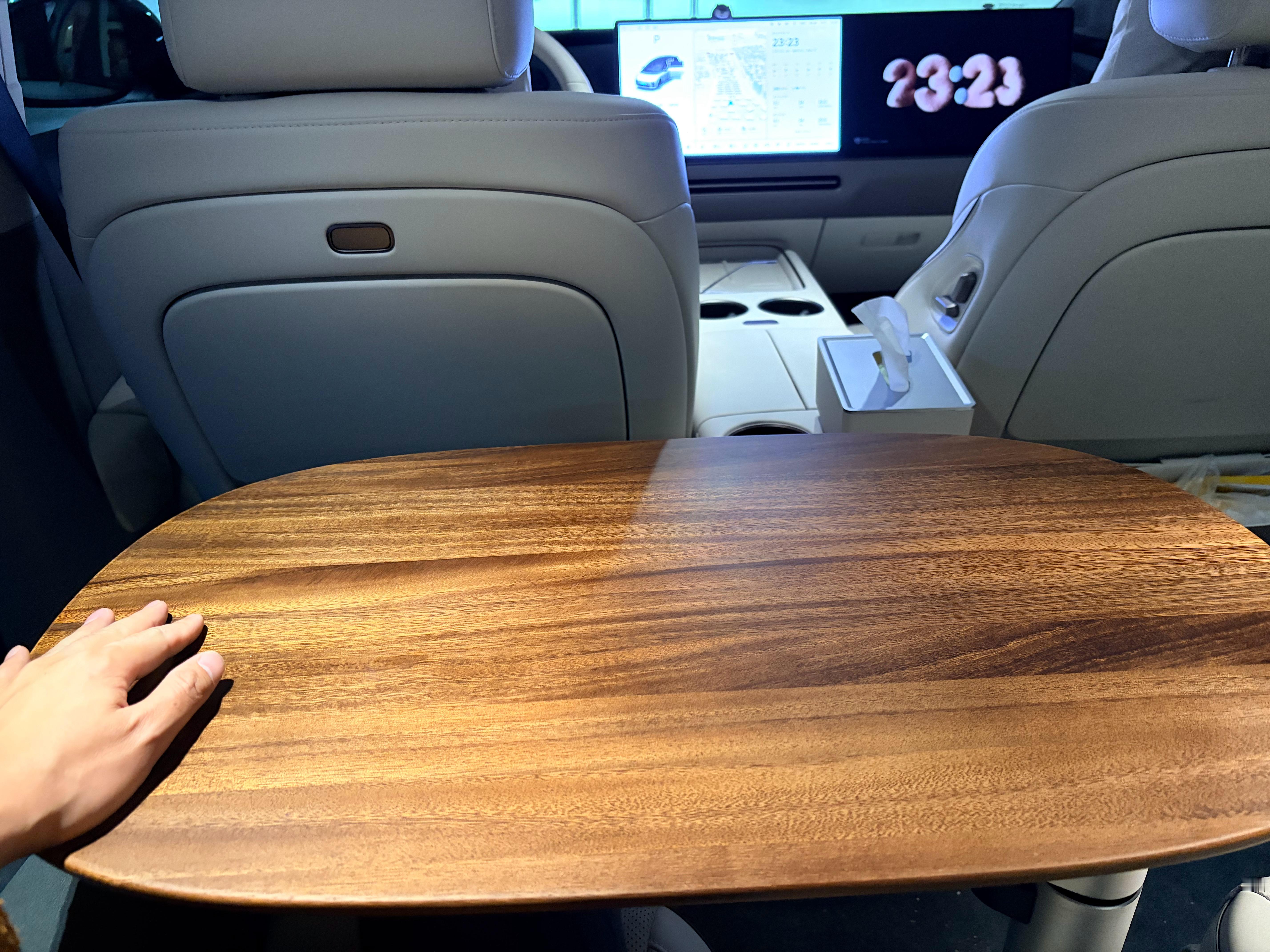 移动的家理想i8 终于是装上“茶几”了,而且因为副驾驶后面常年不坐人,平时也不用拆下来就固定到左边就行。