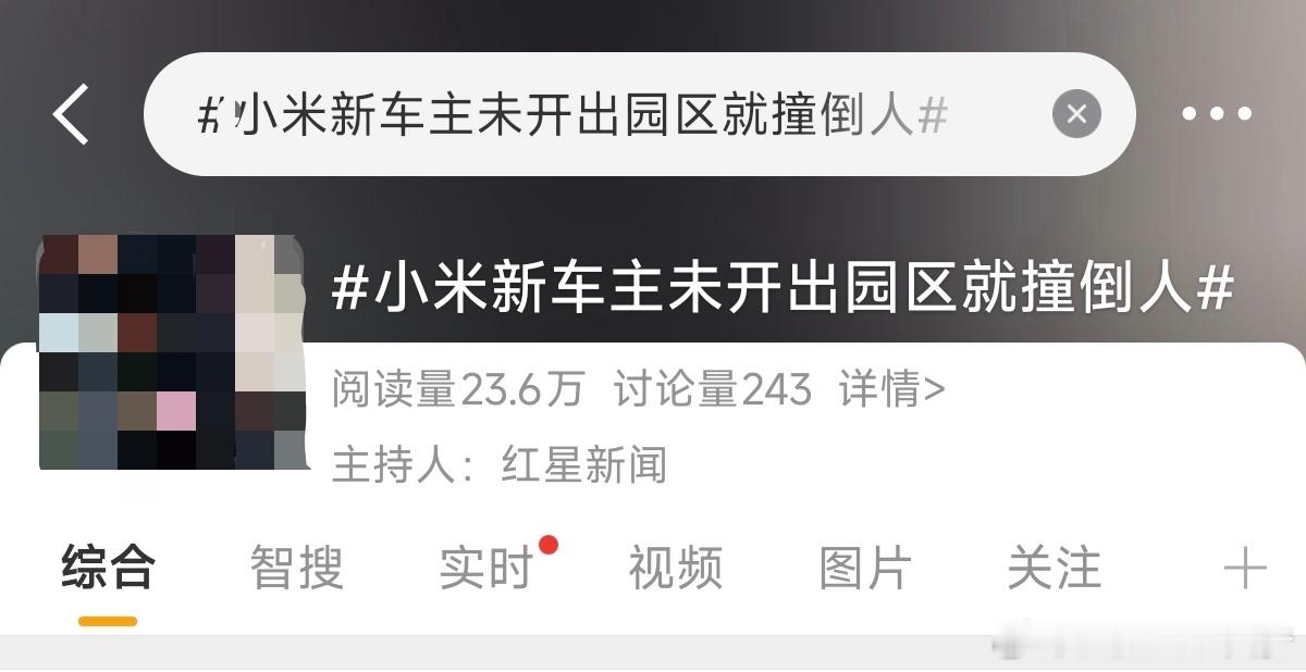 小米新车主未开出园区就撞倒人我的观点还是跟以前一样,是人的问题就是人的问题、是车的问题就是车的问题,一定要理智客观的分开来看。视频就不发了,我看了一下确实是一场意外,新车主刚提车我估计是还不熟悉车,在园区里面也没有超速也没有用智驾,所以跟车没有关系。另外目前伤者的情况是被120救走了,而不是某些媒体嘴里的“送走”,这时候出来带这个节奏,不知道这些媒体能否嘴下积德?现在连基本的求证都不做了吗?这时候出来阴阳事故,把节奏带到小米身上的人才是该被清朗的对象,最后还是继续等一个交警公告。ps:原来23.6万话题阅读,就可以上热搜了。目击者回应小米新车园区撞倒人