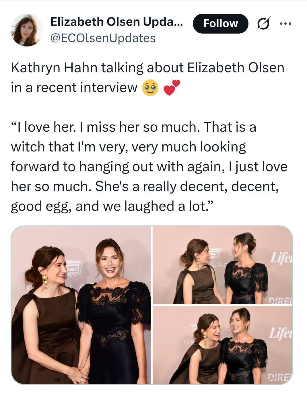 绯红女巫进《阿加莎》剧组,最大的底牌根本不是“她会来”,而是“她必须来”。 漫威比谁都清楚,凯瑟琳·哈恩和伊丽莎白·奥尔森在《旺达幻视》片场锤炼出的化学反应,是砸钱也买不来的稀缺资源。 哈恩说奥尔森有“正直雷达”,能瞬间辨识人的虚伪——这种信任让她们的即兴表演能直接引爆笑点。 你看片场花絮,一个眼神递过去,另一个就能把台词扔回来。 这种默契,不是演出来的,是两人在无数条NG里淬炼出的直觉。 漫威现在要做的,就是把这团银幕下的火,原封不动搬到魔法大战里。 所以,这不再是一个简单的客串新闻。 这是漫威在告诉观众:我们尊重角色,更尊重创造角色的演员。 好戏,从来都是聪明人之间的一场共谋。 当顶级演员彼此信任,她们创造的就不是剧情,而是传奇。 那不是一次客串,是一场加冕。