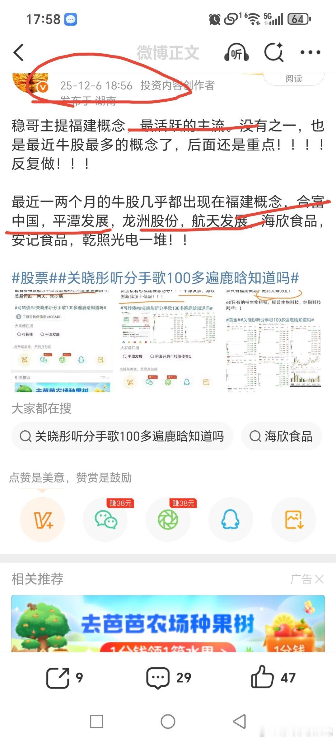 稳哥十一月提的福建概念,十二月初接着主提的福建概念,最活跃的主流。没有之一!!!最近一两个月的牛股几乎都出现在福建概念,合富中国,平潭发展,龙洲股份,航天发展,海欣食品,安记食品,乾照光电一堆!!股票关晓彤听分手歌100多遍鹿晗知道吗