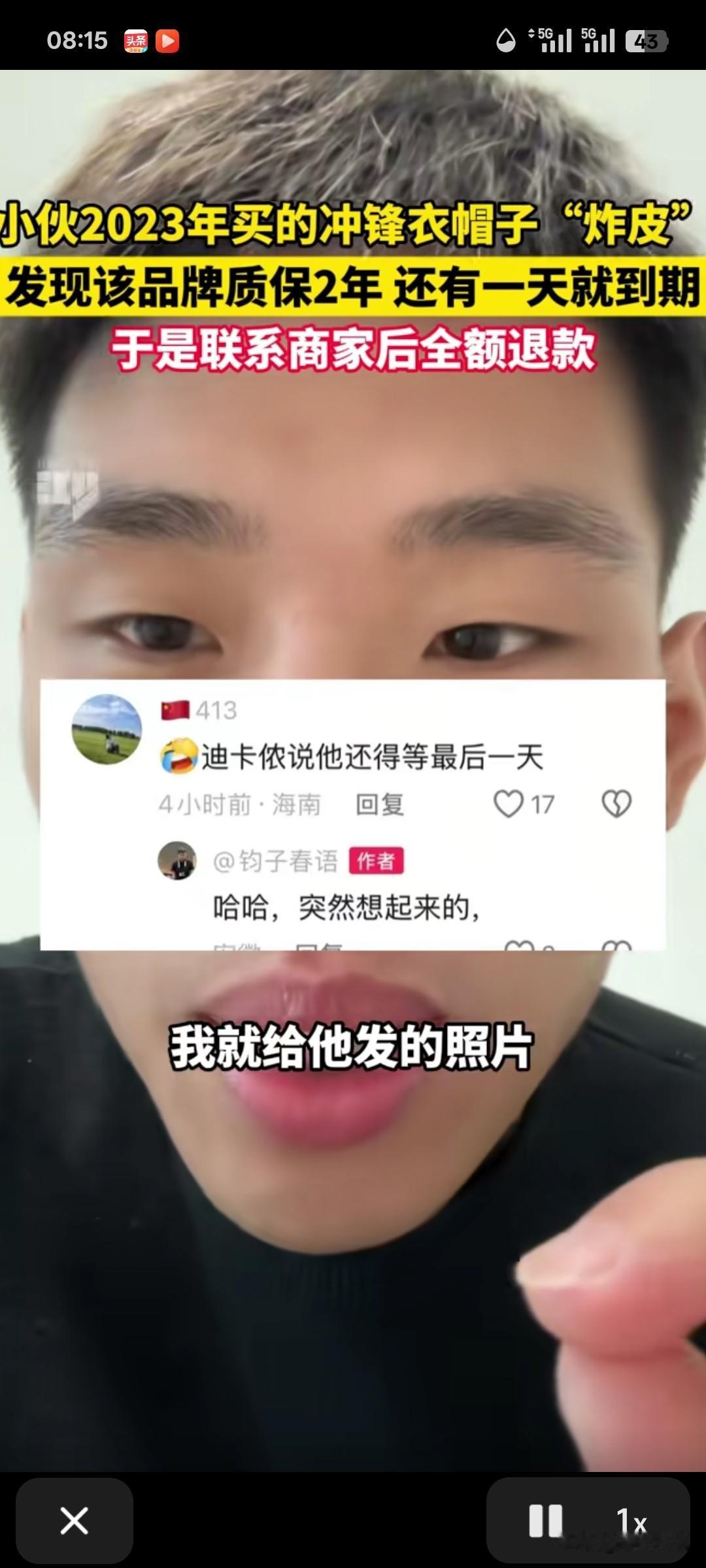 男子晒出了自己2003年买的冲锋衣, 发现上面炸毛了, 保质期还有两天, 没事就立刻和客服联系, 客服了解到后表示可以免费更换, 男子也是不敢相信, 本来就是抱着试一试的态度, 结果还真被更换了, 如今又穿着一套新的冲锋! 男子将自己的经历分享到了网络, 该品牌的官方账号都给他回复了, 下面也有很多网友的评论, 大家都在说这家牌子的衣服很不错, 而且售后也非常给力, 这就是免费的广告, 将顾客放在心中的品牌, 生意一定不会差, 大家有买过该品牌的衣服吗? 冲锋衣 冲锋衣对比测试 运动休闲冲锋衣 登山夹克冲锋衣 防风休闲冲锋衣
