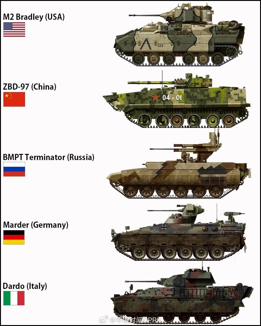 战车,朝鲜的也不错,咋没列入“世界之最”World's Most Powerful IFVs : M2 Bradley (USA) | ZBD-97 (China) | BMPT Terminator (Russia) | Marder (Germany) | Dardo (Itlay)