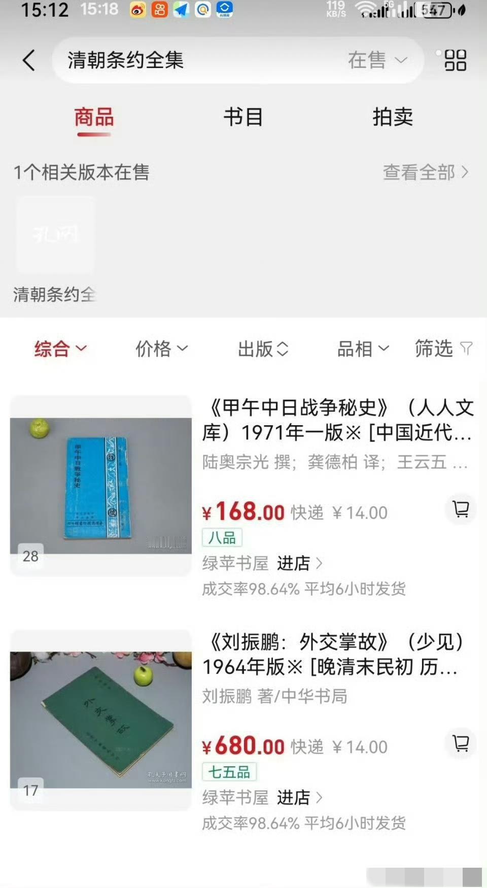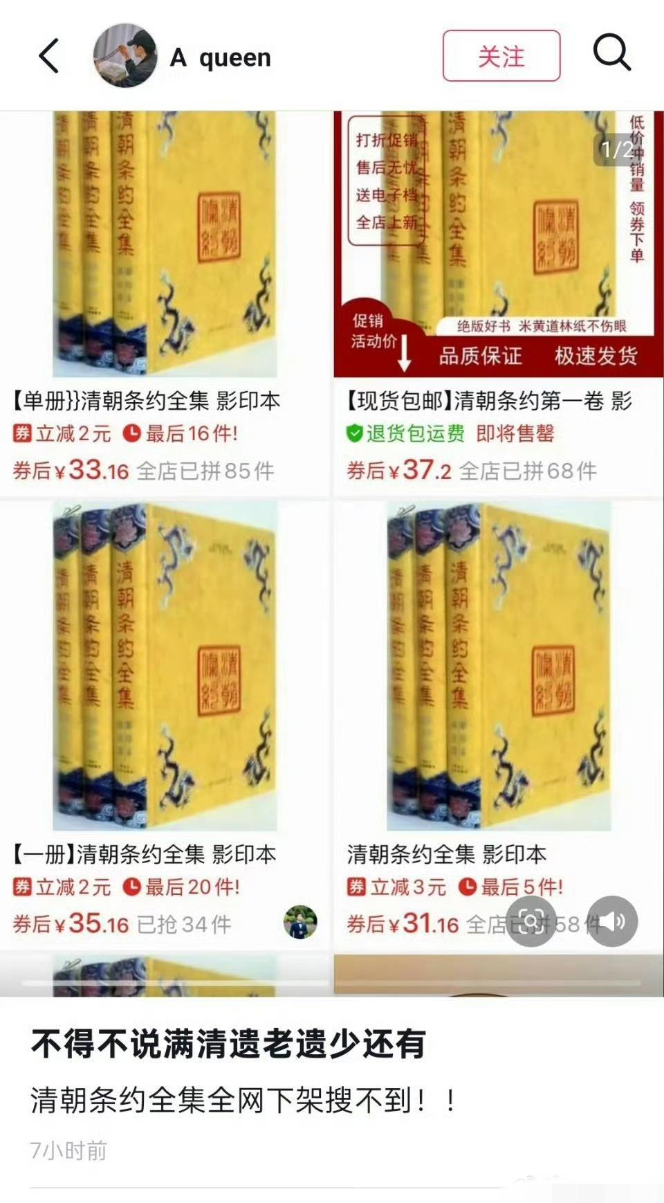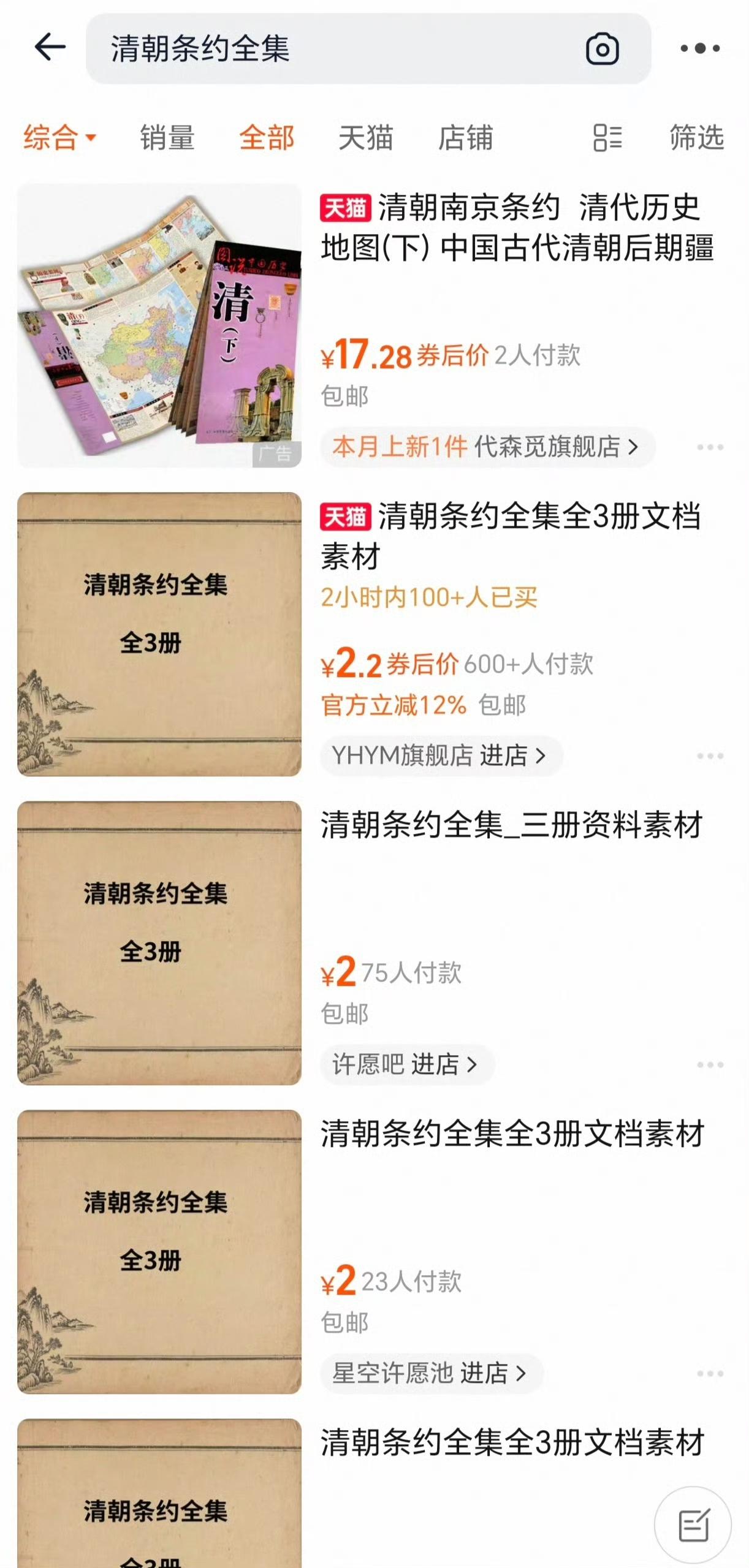 清朝条约全集 下架。 电商平台的《清朝条约全集》都下架了? 不过看起来应该是下架了盗版书,这书正版好像卖挺贵的,现在估计都绝版了。 晚清条约 清朝条约 丧权辱国条约