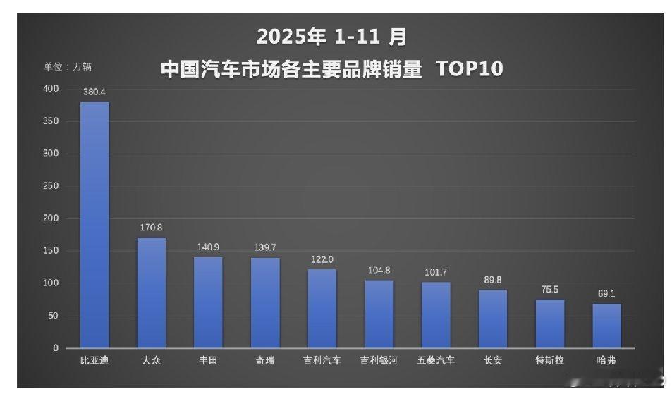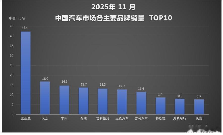 中国汽车工业学会公布今年1-11月的销量数据,比亚迪前11月累计销量突破418万辆, 11月单月销售42.4万台,数据条拉出无人区。这么看来,全年目标要超额完成啦!