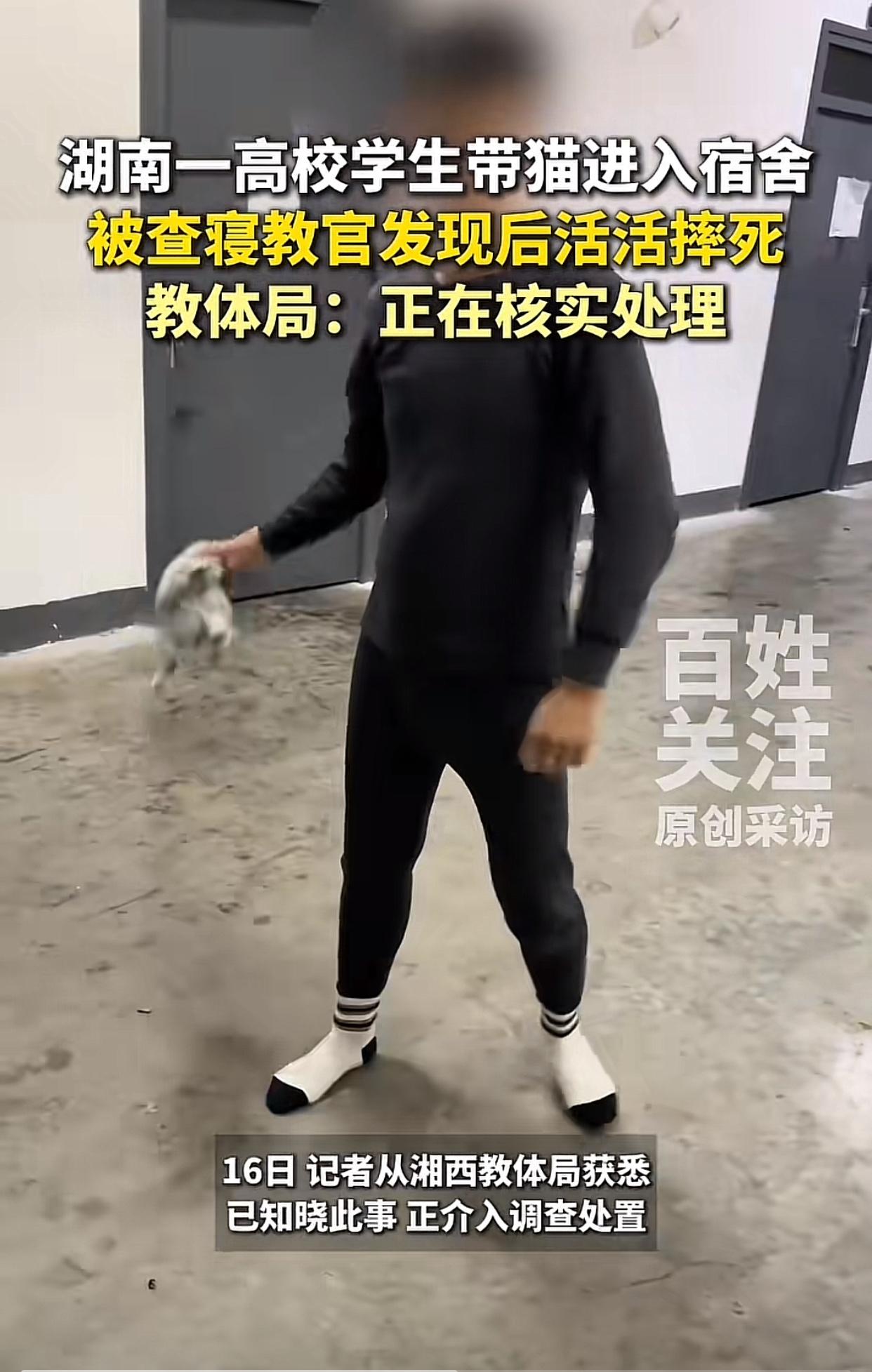 近日,发生在湖南湘西一职业技术学校的摔猫事件!很多人都在骂教官,教官确实很可恶!我就不再骂一遍了!我想说一群学生拿着手机在旁边拍照,也没有一个阻止,眼睁睁的看着猫被摔,而猫主人第一句话说的是“来,你摔啊”!小猫无辜啊,感觉小猫是他们相互之间泄愤的工具,只是两人表现形式上不同而已…..