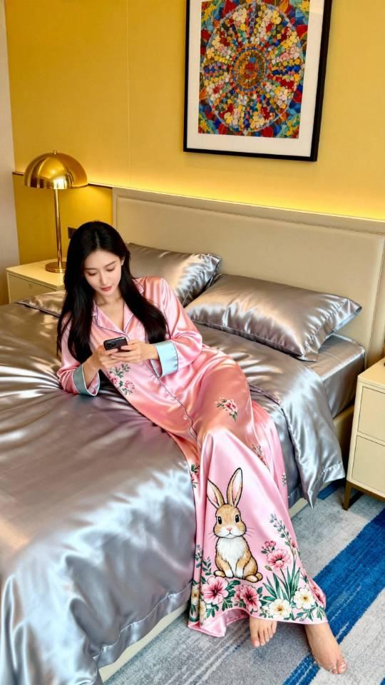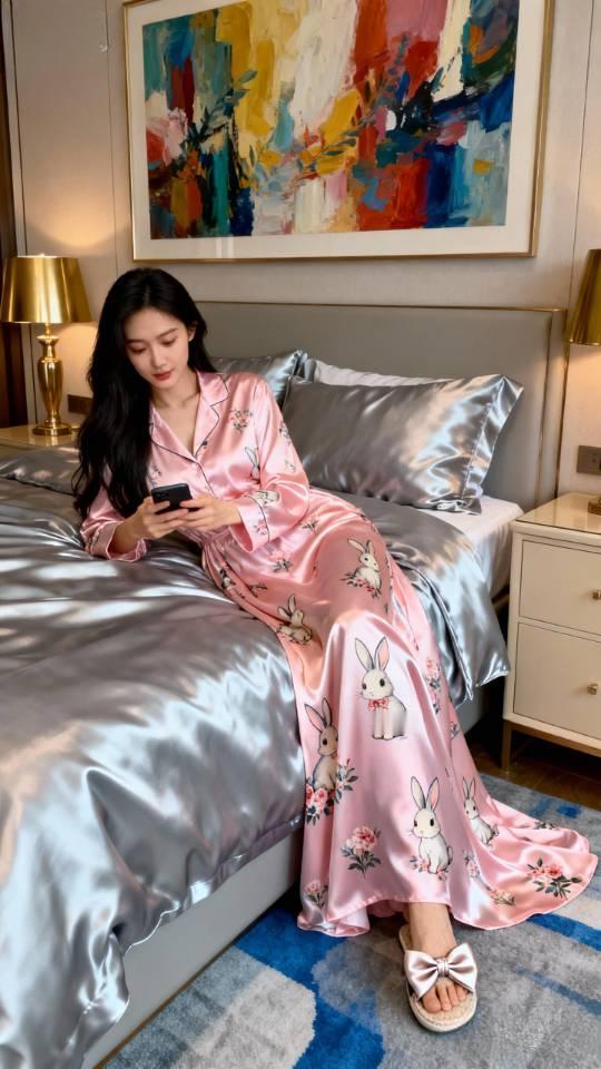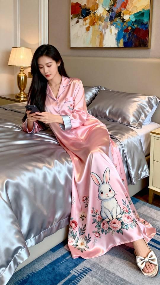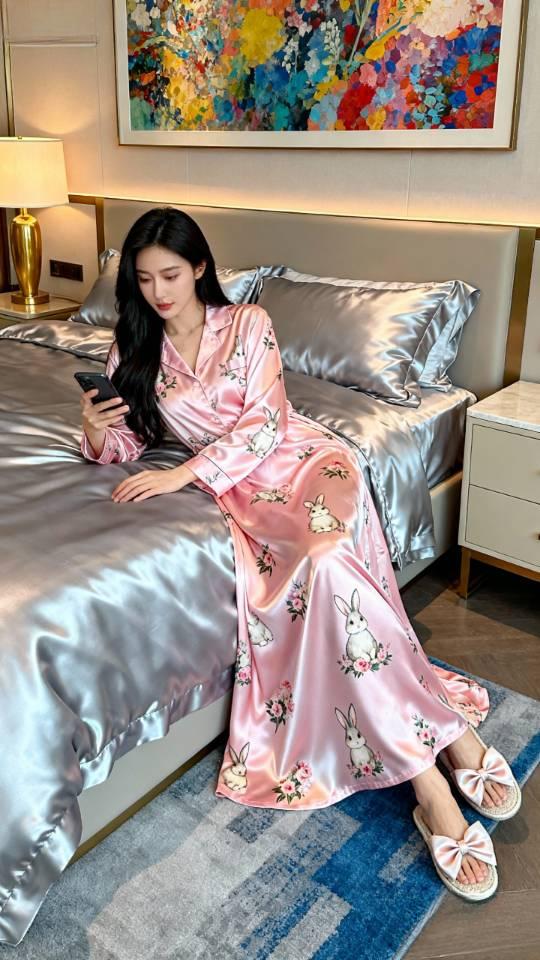 青蓝色丝缎旗袍女子南湖边留影。旗袍 旗袍美女