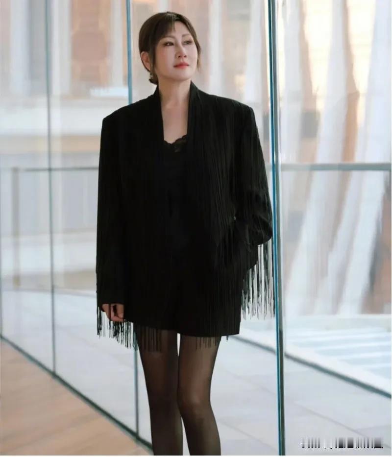 63岁的张凯丽出现某活动现场,一身黑色,连衣短裤加西装加黑色丝袜加细高跟鞋,真的即高贵又神秘,完全颠覆了以前的亲民形象,不仔细看都没有认出来。 不少网友说她这个年龄这么穿不合适,我觉得挺好的啊,60多岁保持这个身材已经很好了,一辈子很短,做自己就好。 过了35岁以后,成年女性的腰围每年都几公分的增长呢?改变一下以往的形象,现在挺亮眼挺好看的呀,不一定年轻的才配这样穿搭,自己喜欢就好。
