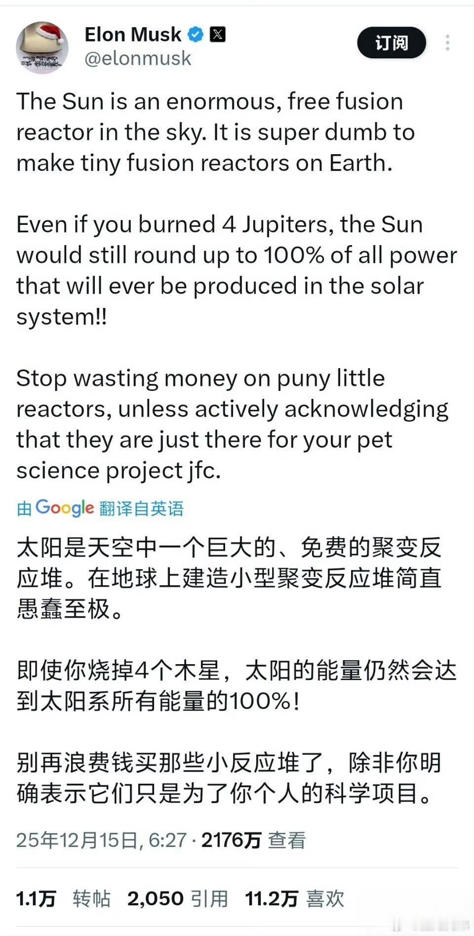 马斯克把炮火对准可控核聚变,认为核聚变无用,全网对马斯克的声讨声也寥寥无几。甚至还有人大力支持马斯克言论。换位思考,如果中国某个CEO,发表对美国新技术的声讨。比如李斌说…雷军说…李想说…你觉得舆论环境会是什么样的?舆论总是对自己严格对外宽松。问题出在哪?