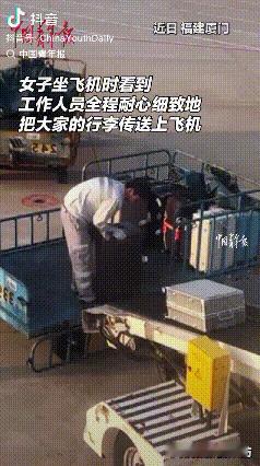 工作该有的样子!福建厦门,女子坐飞机的时候,发现工作人员全程都在耐心细致的把大家的行李箱传送上飞机。女子表示,我每年飞行好多次,看到很多次暴力运输,这次看到传送行李的小哥不仅工作认真,而且还非常的有耐心,让我感到惊讶。 暴力运输行李箱难免会损坏,像小哥这样耐心细致传送,既不会损坏行李箱,也能让我们看出小哥对工作的认真和热爱。 原本行李运输就要轻拿轻放,有些不负责任的人就会使用暴力,所以对于工作认真的员工企业应该给与奖励。 干一行就要爱一行,对工作认真不仅是对客户负责任,同时也是在对自己负责任。