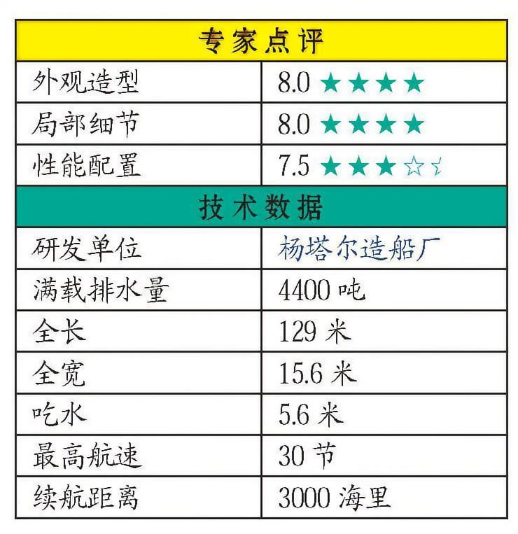 俄罗斯“不惧”级护卫舰“不惧”级护卫舰是装备俄罗斯海军的护卫舰,一共建造了2艘,从1993年服役至今。“不惧”级护卫舰是一种全能型舰队护卫舰,不仅拥有强大的反潜能力,还具有足够的对空监视与防空自卫作战能力。武器装备:1门单管100毫米AK-100舰炮、4座四联装SS-N-25“弹簧刀”反舰导弹发射装置、4座八联装3S-95转轮式垂直发射系统、2座“卡什坦”近程防御武器系统。动力装置:2具燃气轮机。“不惧”级护卫舰的设计目的是用来替换数量众多的“克里瓦克”级护卫舰,于1986年开始建造。苏联解体后,该级舰的建造计划受到了极大的影响,原定首批建造3艘的计划在完成首舰“不惧”号后就停止了后续舰的建造。1993年1月,“不惧”号进入俄罗斯海军服役。俄罗斯经济状况好转后,1988年开工的二号舰“雅罗斯拉夫·穆德里”号才得以继续建造,并于2009年开始服役。三号舰“吐曼”号于1990年开工,截至2016年仍处于搁置状态。“不惧”级护卫舰采用长甲板构型,体型比“克里瓦克”级护卫舰更大,以提高适航性以及燃油、武器装载量。上层结构采用倾斜式表面,可减少雷达散射截面。烟囱内设有高效的强制冷却装置,其可将排出的废气温度降低40%,从而在很大程度上减少了红外辐射量。“不惧”级护卫舰拥有强大的舰载武备。舰首设有1门单管100毫米AK-100舰炮,射速达50发/分,射程为20千米,弹药库内备弹350发。此外,舰体中段装有4座四联装SS-N-25“弹簧刀”反舰导弹发射装置。防空方面,该级舰设有4座八联装3S-95转轮式垂直发射系统,装填32枚SA-N-9“铁手套”短程防空导弹。“不惧”级护卫舰还装备了2座“卡什坦”近程防御武器系统,分别设于机库两侧。|