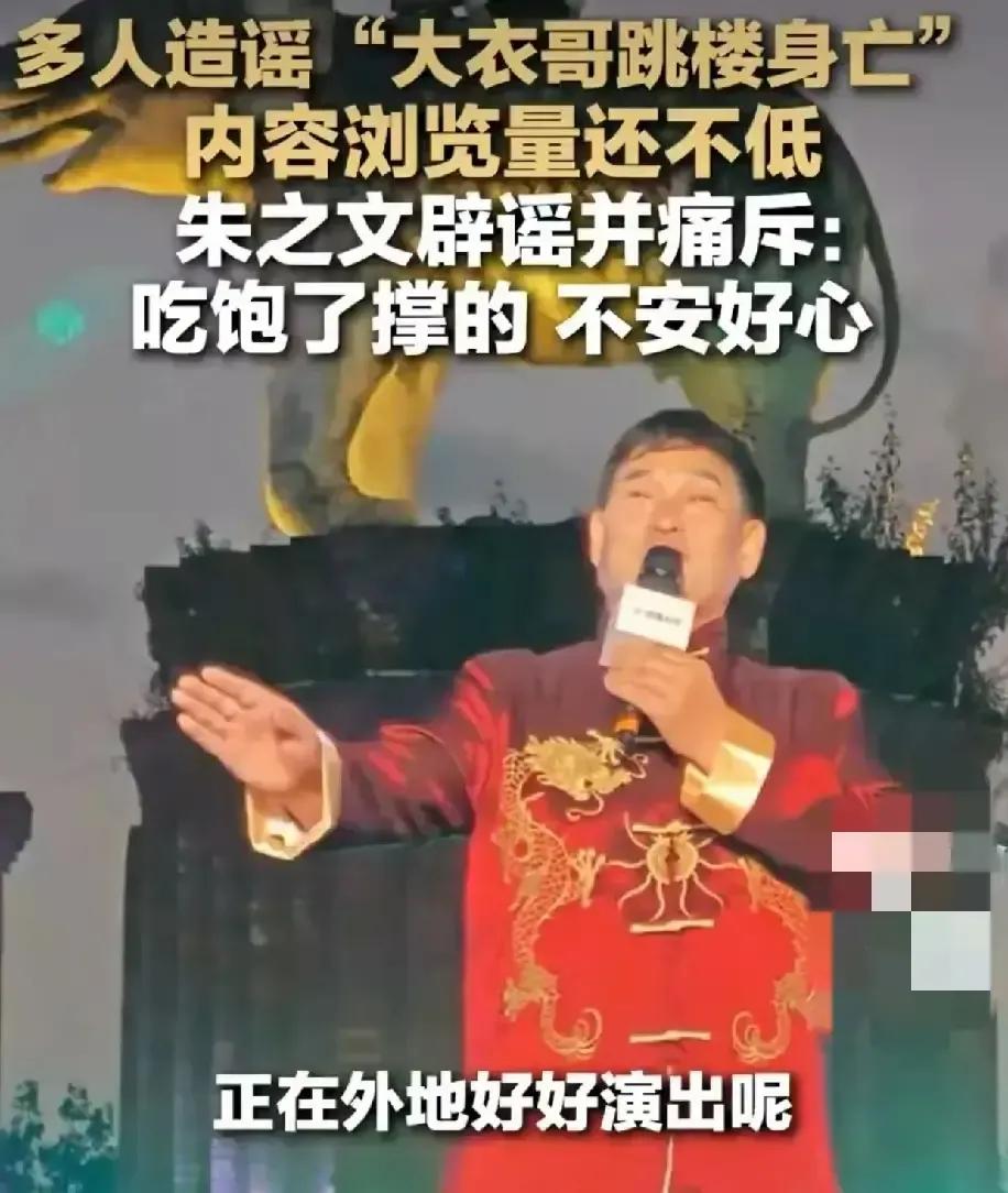 大衣哥朱之文刚下地回家,手机就被亲戚打爆,说他跳楼没了。 老人一脸懵,自己好好在菜园拔草,网上已经给他办完葬礼。 视频剪得跟真事似的,配哀乐加旧图,热搜冲到第一,评论区全是蜡烛。 他气得手抖,连夜录视频:我活得好好的,谁这么缺德? 家里人说他晚饭都没吃,坐着发呆,像被人当头打了一棍。 警察顺着账号抓人,发现就是几个小号想蹭流量,赚点击钱。 粉丝大多是五六十岁的大爷大妈,不会求证,只会哭,真把谣言当噩耗。 拿别人死活当流量密码,心太黑。 造谣一张嘴,辟谣跑断腿,希望这次罚到疼,让键盘手长点记性。