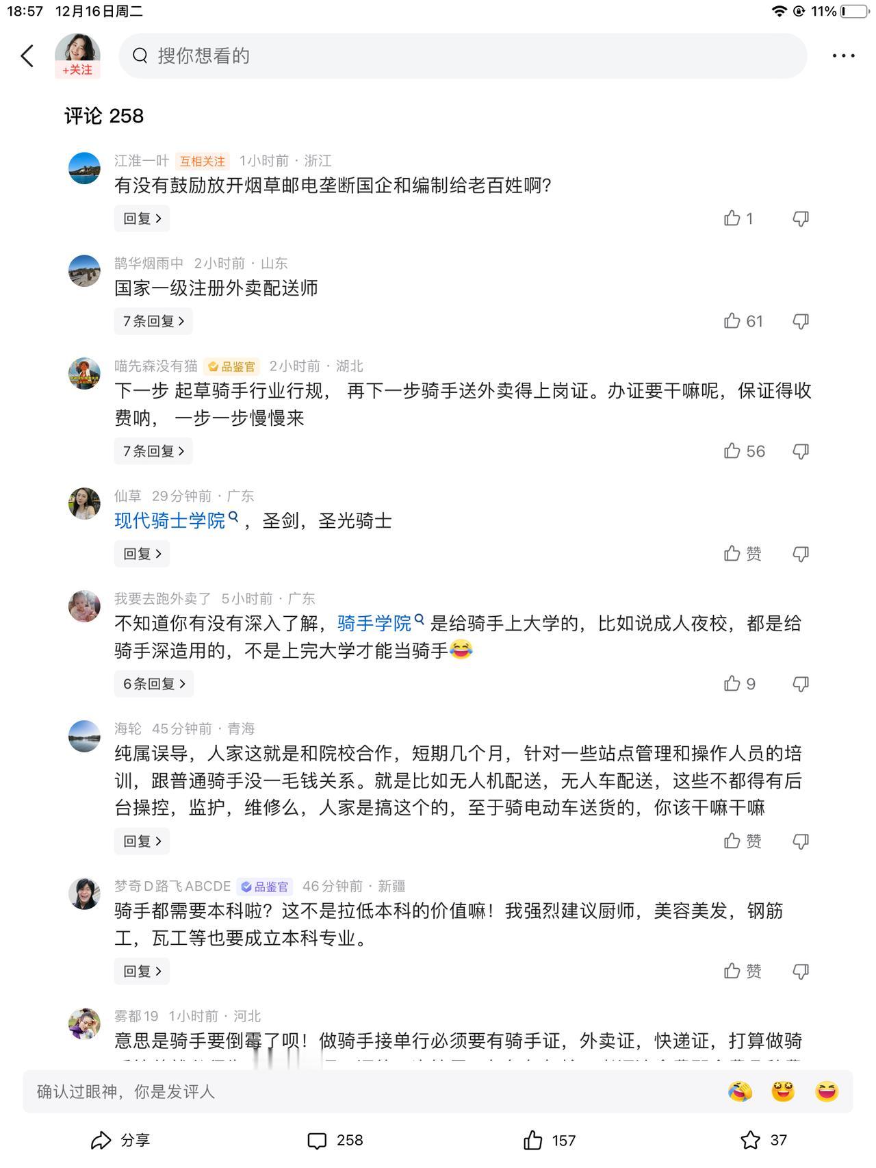 别误会,这是给骑手上的学校不假,你我该送外卖还送外卖。这是给上进的骑手上的大学,培养基层干部的。 吓我一跳又一跳!我以为送个外卖以后都要考大学了呢?那么吓人呢! 不是的哈。跑咱的就行了。可以注册,也可以跑。针对一些站点后台的操控监护维修等开设的课程。跟普通配送没关系,把心放回肚子里了。