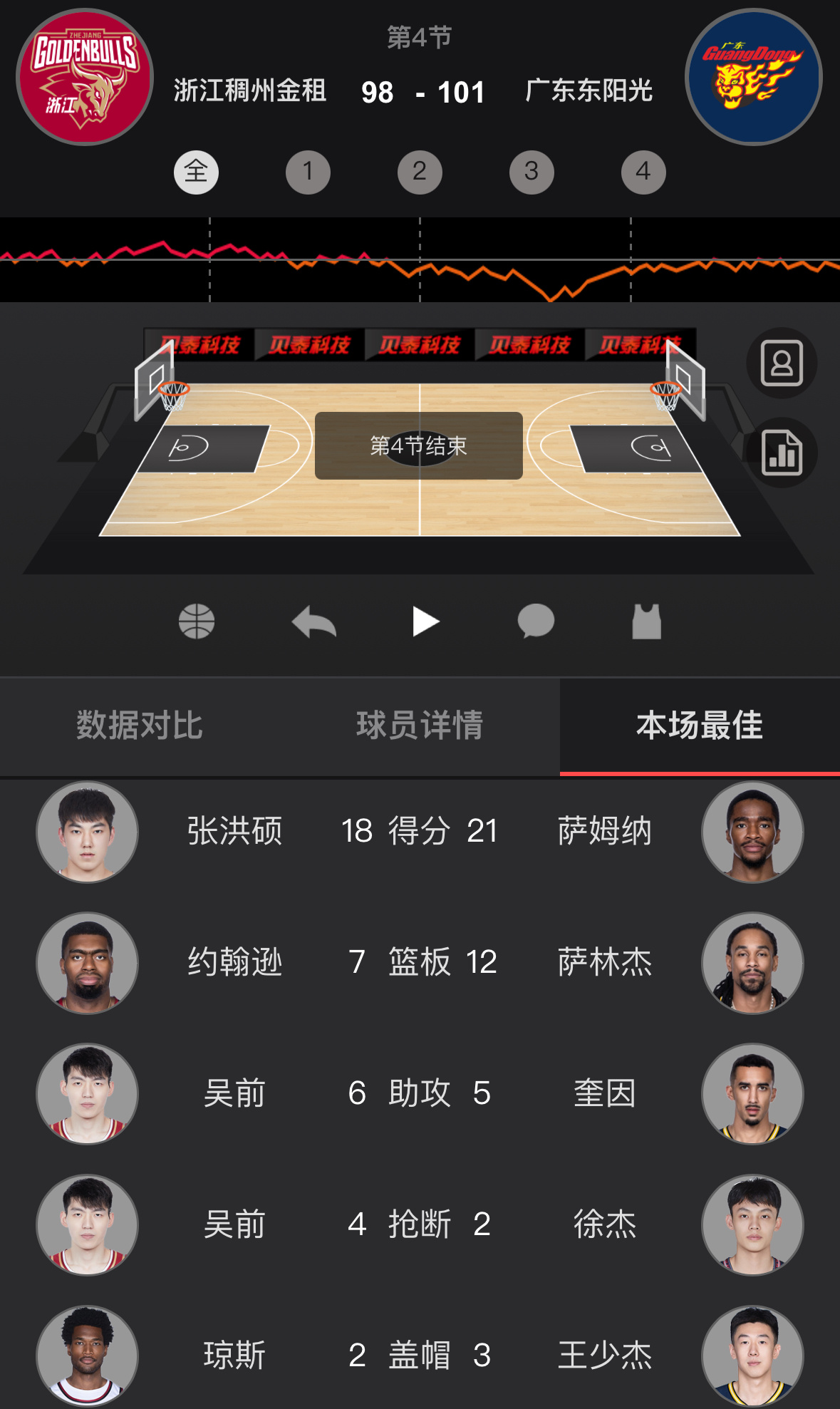 吴前最后时刻三分绝杀不中,广东送给浙江开季两连败。李悦洲和陈家政都获得了足够多的轮换时间,二人都有还不错的表现。浙江男篮vs广东男篮CBA
