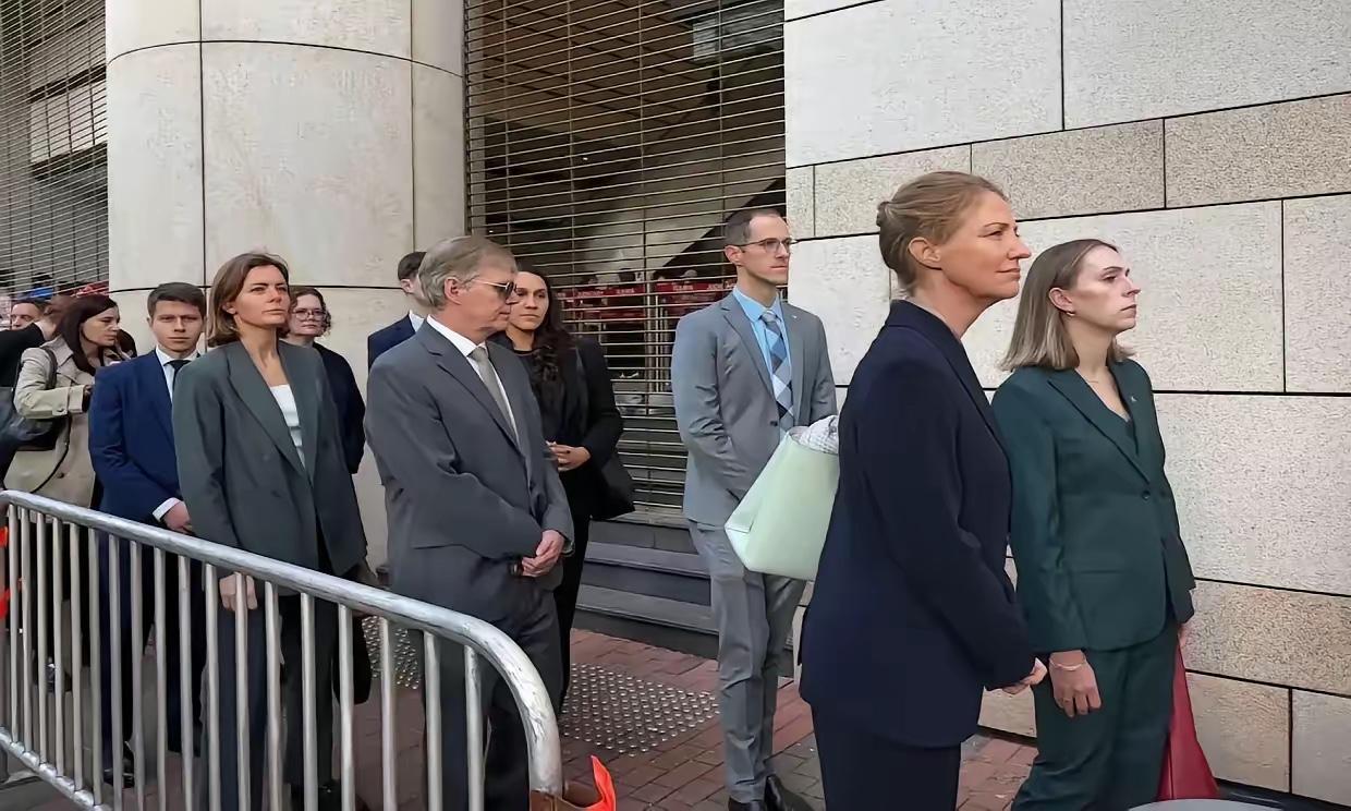 有个画面,很耐人寻味。 黎智英案宣判当天,西九龙法院外,英美欧多国领事扎堆排队旁