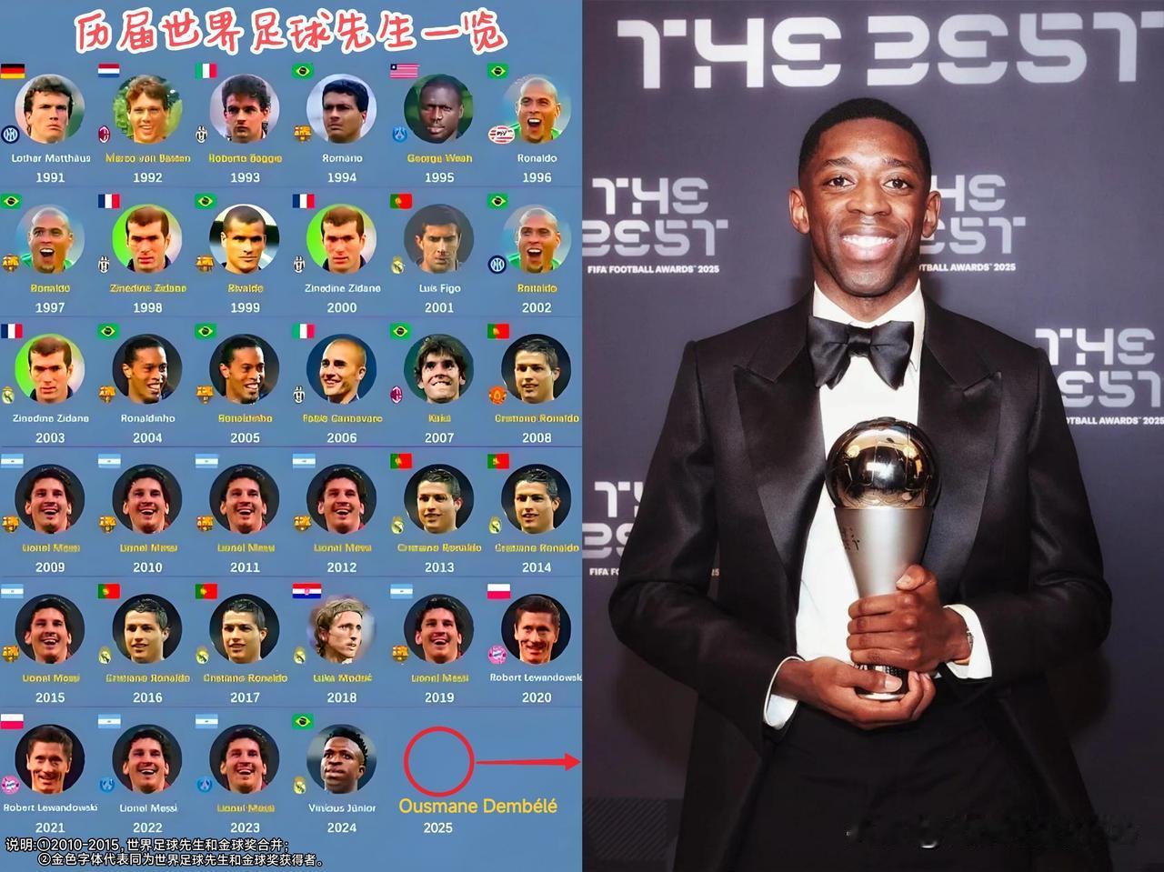 登贝莱:这一年赢麻了! 首位90后世界足球先生,双料MVP第13人,齐达内之后第2位获得世界最佳足球运动员的法国人,也是第6位获得金球奖的法国人。 过去的一年,除了以上两项极为重要的个人荣誉,登贝莱还获得法甲最佳射手、法甲最佳球员和欧冠最佳球员,另外随大巴黎夺得5个冠军,世俱杯也拿到了亚军——集世界杯冠军、欧冠冠军、金球奖、世界足球先生于一身,这个28岁的法国年轻人了不起,未来可期。 一起聊聊足球 世界足球先生 你认为最好的足球运动员是哪位