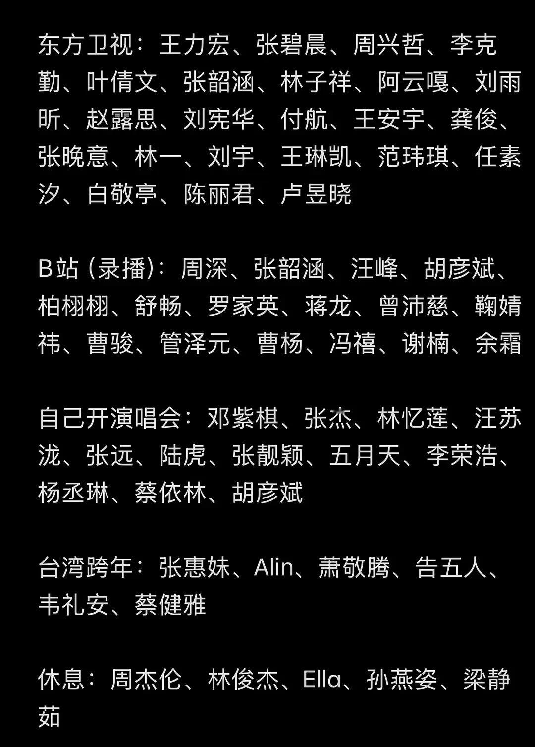 豆瓣昨晚总结的跨年阵容,看上去湖南卫视又下血本了,好多人啊.gif