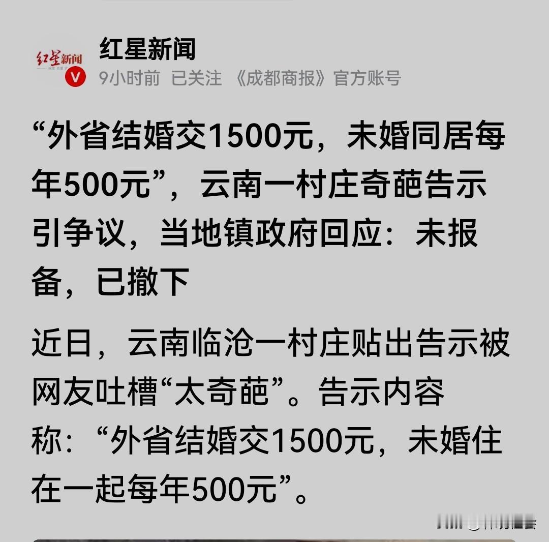 其实这个规定蛮好的,婚前不能乱来,没有结婚不能怀孕……还应该再加上一条,对出轨者严惩!按说维护家庭和睦的村规民约,也没有什么不对呀? 可是,在人口出生率持续降低的今天,出台这样的规定明显不同,也没有向上级报告,当然要撤回。