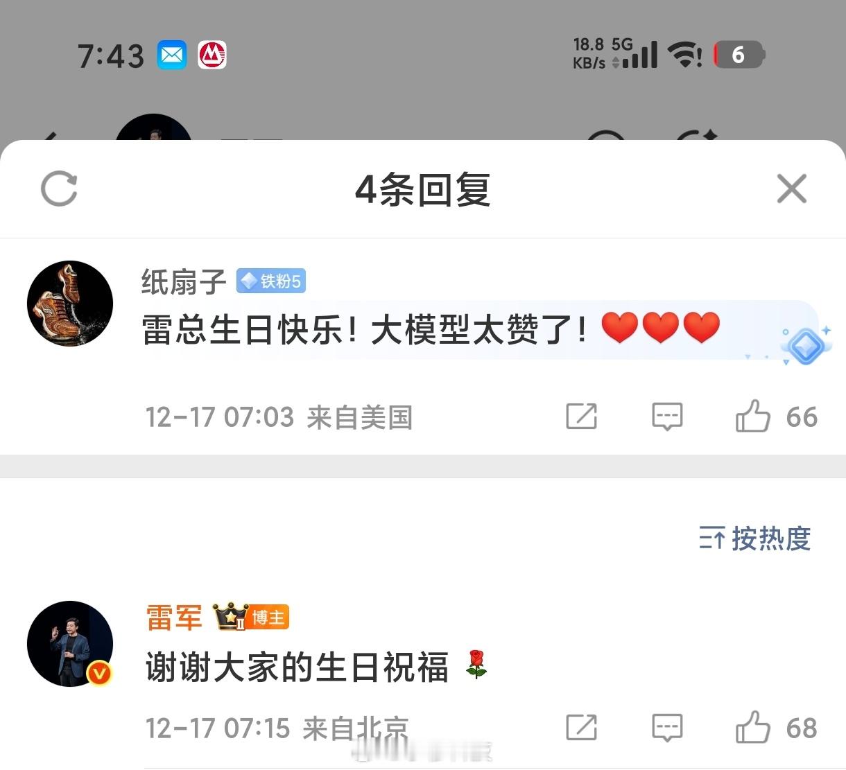 雷军生日雷军回应生日祝福雷总回应了米粉们的生日祝福,米粉们的祝福得到了回应