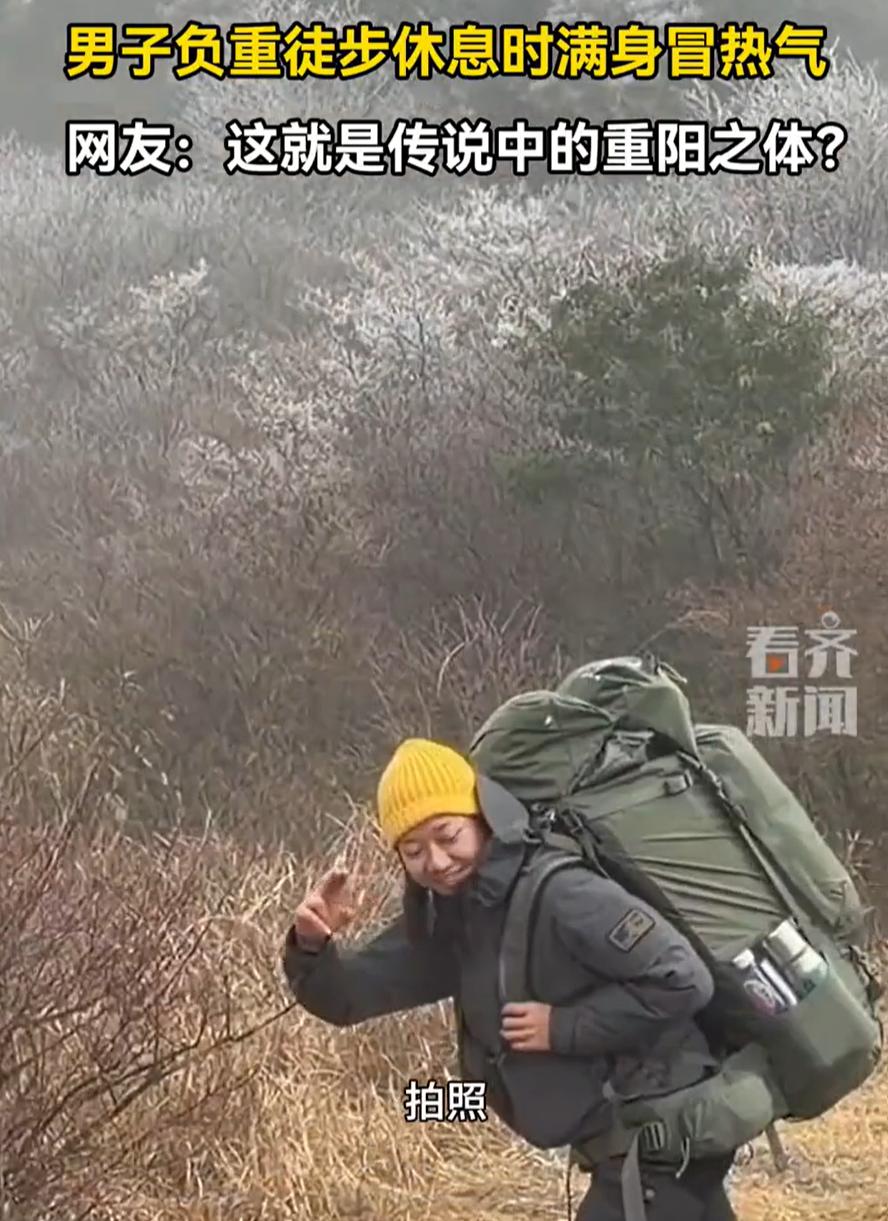 这下解释不清了!安徽,一男子背着大包去户外负重徒步,中途卸下包休息时,整个人瞬间被白茫茫的雾气环绕,浑身热气蒸腾,像刚揭开盖的蒸笼。这一幕引来不少路人围观拍照,可这浑身冒白气的现象,到底算身体好还是身体虚,却在网上吵翻了天 视频里,男子体型壮实,包一放下来,旁边就有人好奇地凑上去。一个女孩接过他的背包背在身上试试,那包几乎赶上她上半身那么大,看得出分量不轻。而男子站在一旁,头上、背上不断飘起白雾,见到有人拍他,也只是有点不好意思地笑着 视频拍摄者表示,这背包估计有五六十斤重。当时大家注意力都在试背包的女生身上,但他一眼看见男子浑身冒热气,觉得特别有趣,就顺手记录了下来 视频传到网上,评论立刻分成了两派 有网友说:这是虚,我也这样,一干活或者运动就冒汗,天冷的时候就冒热气 但也有网友说:之前看过东北虎在雪地里趴着,身上也这样冒热气,那能叫虚吗?这分明是身体棒,阳气足,属于“重阳之体” 其实,这种现象在运动后很常见,尤其在天气冷的时候。人体运动时会产生大量热量,出汗是散热的方式之一。当周围气温较低,汗液迅速蒸发,就会形成可见的水蒸气,看起来就像浑身冒白烟。这和身体素质的好坏没有绝对对应关系 有些人代谢快、汗腺发达,容易出汗散热;有些人则相反。关键要看个人平时的体能状态、运动习惯以及出汗后是否容易疲累、恢复快慢等 而从另一个角度看,能背着几十斤的包徒步,本身已经说明他有一定的体能基础。运动后散热快,某种意义上也是身体调节机能灵敏的表现。不必简单用“虚”或“不虚”去定义,更重要的是那种愿意负重前行、在自然中磨练自己的态度 说到底,身体是自己的,状态好不好自己最清楚。不必太在意别人的标签,动起来、坚持下去,比什么都真实
