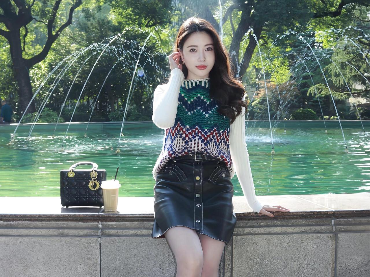 满庭芳·都市行吟 石楼凝霜,长街曳影,格衫轻衬晴光。黑裘裁玉,金扣缀寒裳。白缕堆云绕颈,青丝软、漫拂斜阳。喷泉侧,彩菱织袖,皮裙趁风扬。 行来芳径畔,棕衫叠素,革履凝香。又花笼镂雪,罗袜凝霜。更著青衿漫卷,携清咖、倚树疏狂。繁华里,一身风韵,步步惹秋光。