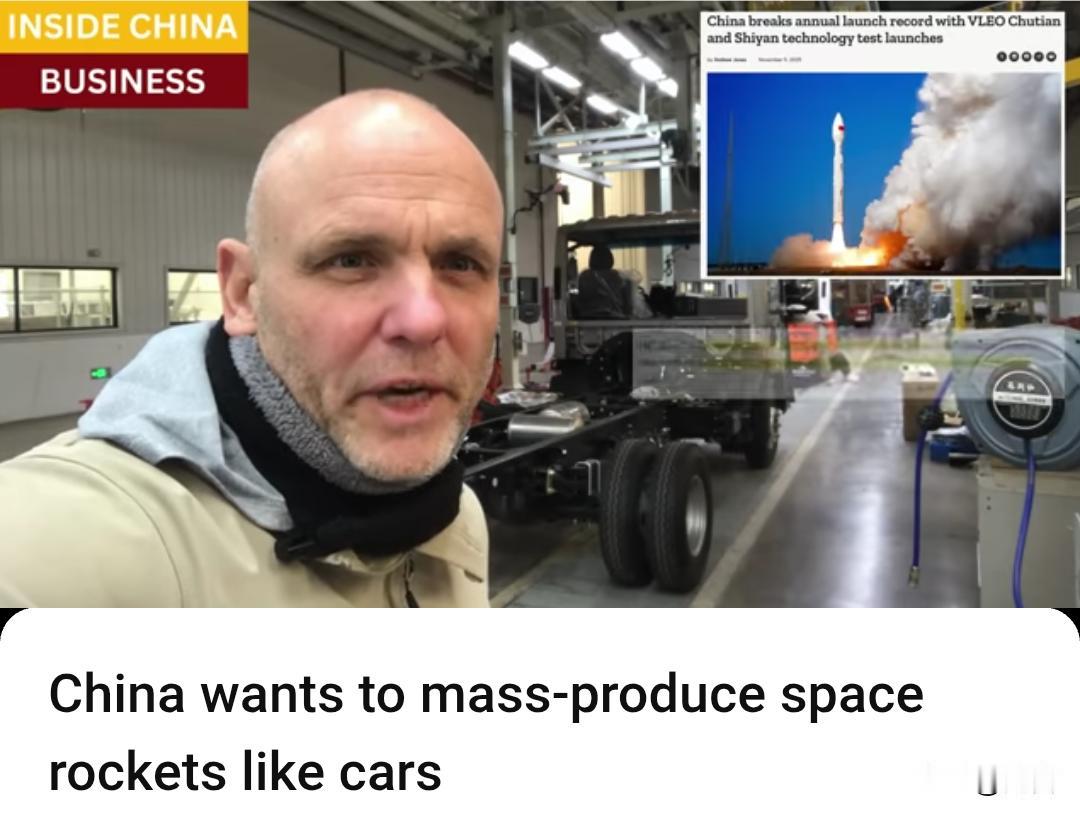 国外博主:中国期望像生产汽车那样,大规模制造火箭与航天器。 12月16日,一位老外于视频中称,中国正转向精益生产模式,旨在实现航天器的大规模生产。中国汽车制造商凭借雄厚的资本和人才储备、完善的供应链以及“拉动式”生产技术等优势,获得了前所未有的成功。中国工程师希望借助在汽车行业行的相同流程,迅速超越Space X ,达成每年数百次的发射目标。 我国取得的成就和突破速度,国外网友都看在眼里。人工智能、航空航天、半导体、新能源汽车等前沿领域都处于领先地位,他们深信用不了多久就能如这位博主所言的那般,实现像生产汽车一样制造航天器和火箭…