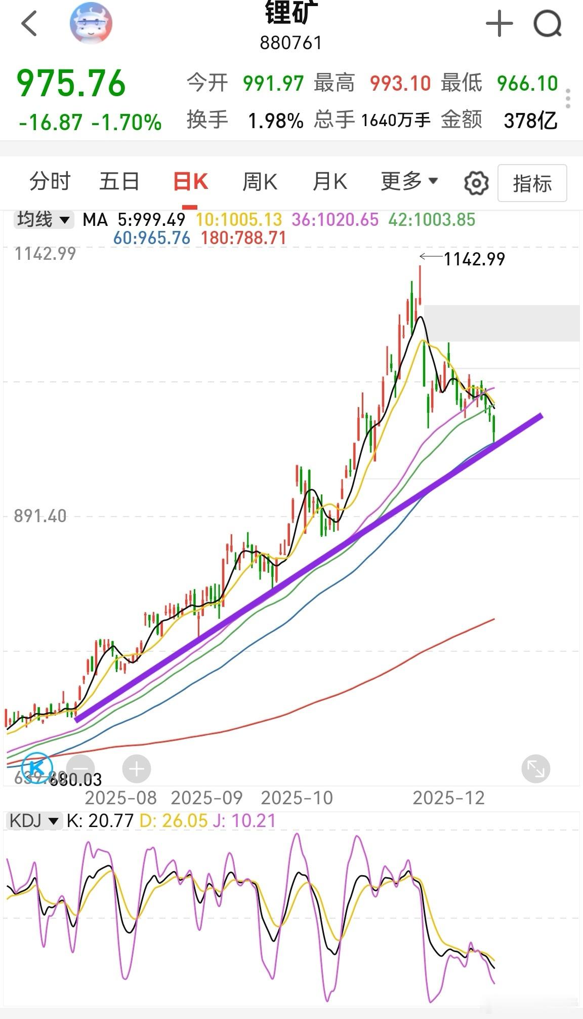 锂矿暂时到了支撑位,趋势还没转变。这个月时间不多了,机构为了排名也不敢大幅进场,估计也就托举一下,毕竟跌太多了,业绩也受影响。锂矿的走势也可以作为指数级回调暂时告一段落的佐证。