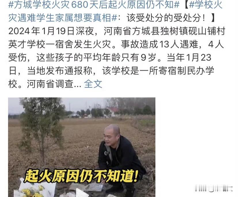 13名孩童殒命!方城火灾25人被追责,3个校园安全铁规必须落地 2024年1月19日深夜,河南方城英才学校的大火让13个家庭破碎!三年级学生宿舍突发火灾,4名孩子受伤,13名平均年龄仅9岁的孩童永远离开了,这场悲剧让无数人揪心。 时隔近一年,12月17日官方调查报告终于公布:火灾是宿舍里一名小学生的打火机引燃衣物床铺导致,25名履职不力、监管缺位的责任人被严肃处理,校方李某等3人涉教育设施重大安全事故罪,近期将开庭受审。 可这场大火绝非“偶然”!涉事学校早有隐患:56平方米宿舍塞进32名学生,远超“每间不超6人”的国标;2021年年检就被要求整改,却没落实;学生带打火机进校园,宿管和老师毫无察觉,消防安全管理形同虚设。 更让人心寒的是,事故后家属迟迟没拿到书面调查报告,被以“涉及未成年人”为由拒绝,直到舆论关注才迎来公开,而这背后是校园安全监管的层层失守。 校园安全容不得半点马虎,这3个铁规必须刻进每所学校、每个家长心里,再也不能让悲剧重演。 第一个铁规:宿舍安全硬达标,绝不打折扣。严格执行“每间宿舍不超6人”标准,清理易燃杂物,消防通道24小时畅通,灭火、应急照明设备定期检查,从硬件上筑牢防线。 第二个铁规:火源刀具严管控,教育要到位。按照规定没收学生携带的打火机、火柴等火源,开设常态化消防安全课,教孩子认消防器材、学逃生技巧,让安全意识扎根。 第三个铁规:监管问责不手软,闭环要落实。教育部门定期开展“穿透式”检查,对年检整改、安全隐患零容忍,一旦出现失职失责,从严追责到底,形成“检查-整改-问责”闭环。 孩子的生命只有一次,校园安全不是口号,而是日复一日的坚守和落实。那些被大火吞噬的童年,本该在阳光下成长,却因监管漏洞戛然而止,这是所有人都不愿看到的痛。 安全是教育的底线,失守就是灾难。方城火灾的追责不是终点,只有让每个责任人心存敬畏,让每所学校把安全落到实处,才能真正为孩子们撑起一片安全的天空。