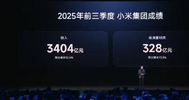 小米2025年前三季度营收3404 亿元,同比增长 32.5%;利润 328 亿元,同比增长 73.5%,利润率9.6%,厉不厉害你雷哥小米前三季度营收3404亿