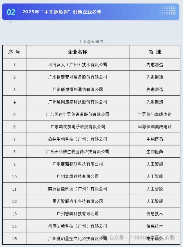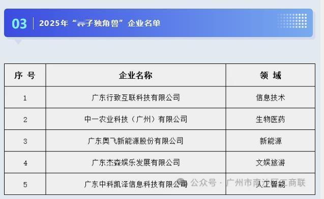 【南沙25家入选2025年广州“独角兽”榜单】由广州市科学技术局指导,广州市科技创新企业协会主办,广州产业发展研究院与广州市科技创新企业协会联合发布的2025年发现广州独角兽创新企业活动,已顺利完成了榜单遴选工作。其中,南沙共25家企业分别入选2025年“独角兽”创新企业、“未来独角兽”创新企业、“种子独角兽”企业榜单。