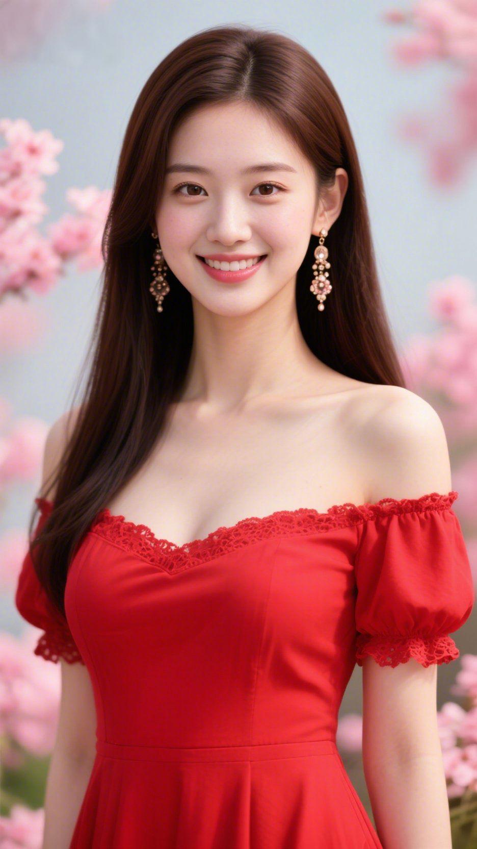 《樱风里的暖红柔意》 粉樱漫作朦胧软雾,风裹着花的清甜掠过肩头,轻拂发梢的柔。绯色裙装衬着舒展的肩线,蕾丝边浸着浅光,像把春的暖意织进衣料;耳坠碎光随笑意轻晃,眉眼间裹着松弛的甜。 背景樱色如浸糖的云,衬得这抹暖红愈发妥帖——没有局促,只有春与笑意织就的轻软,连空气都慢下来,裹着这帧安静的舒展。 原来柔意从不是浓烈堆砌,是裙装裹着的暖,是樱风里漫开的自在,是春日光景中恰好撞见的松弛。这是日常里的温柔留白,是花过时,心底漫开的轻甜。 樱风暖红柔意 春日松弛时刻