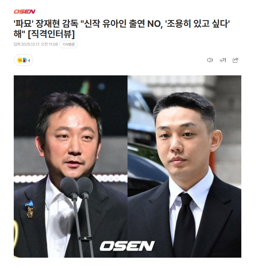 【张宰贤导演否认刘亚仁将出演其新作的传闻】刘亚仁将复出热点现场海外新鲜事 张宰贤导演于17日上午在与OSEN的通话中表示:"正在准备一部暂定名为《Vampir》的新作是事实,但刘亚仁演员将出演一事完全不属实。"他补充道:"剧本本身还没有出来,也从未正式向演员发出过出演邀请。最近确实询问过他的近况,也聊了聊未来的工作安排,但似乎完全不同的说法被扩散开来。(刘亚仁)也表示希望在没有行程安排的情况下安静地生活一年左右。"