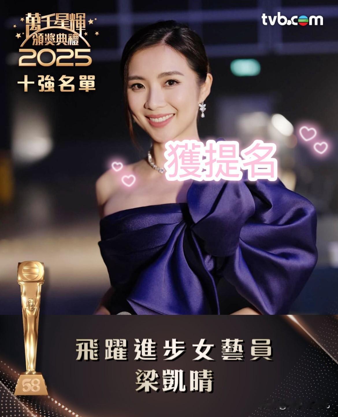 TVB【万千星辉颁奖典礼2025】于2026年1月4日举行,演员们辛苦付出的努力,当晚就会收到成绩表。近日TVB发布进入十强【飞跃进步女艺员】名单,有戴祖仪、王嘉慧、林秀怡、叶倩文、陈桢怡、李芷晴、关嘉敏、梁凯晴、何沛珈及倪嘉雯等等。